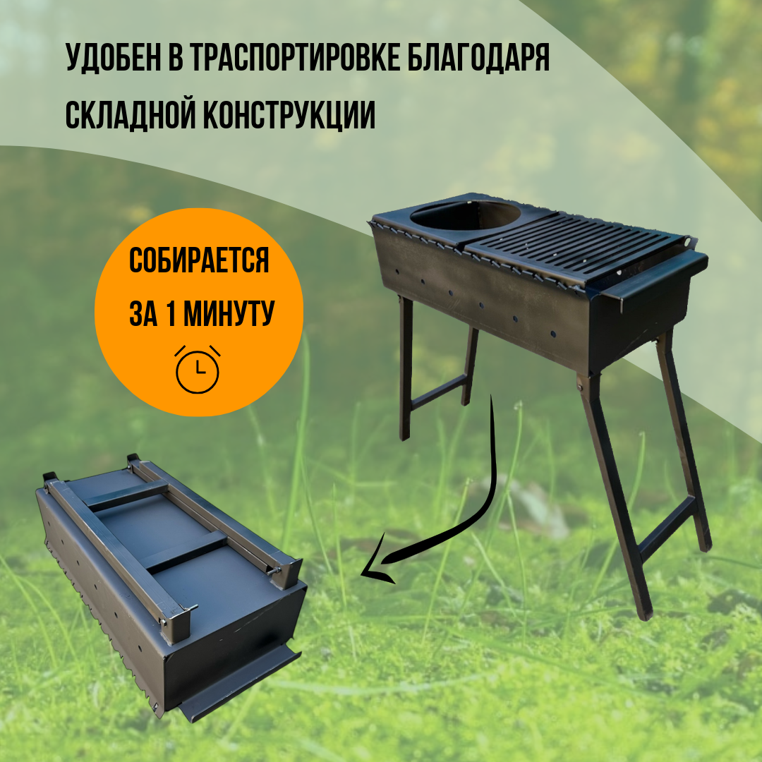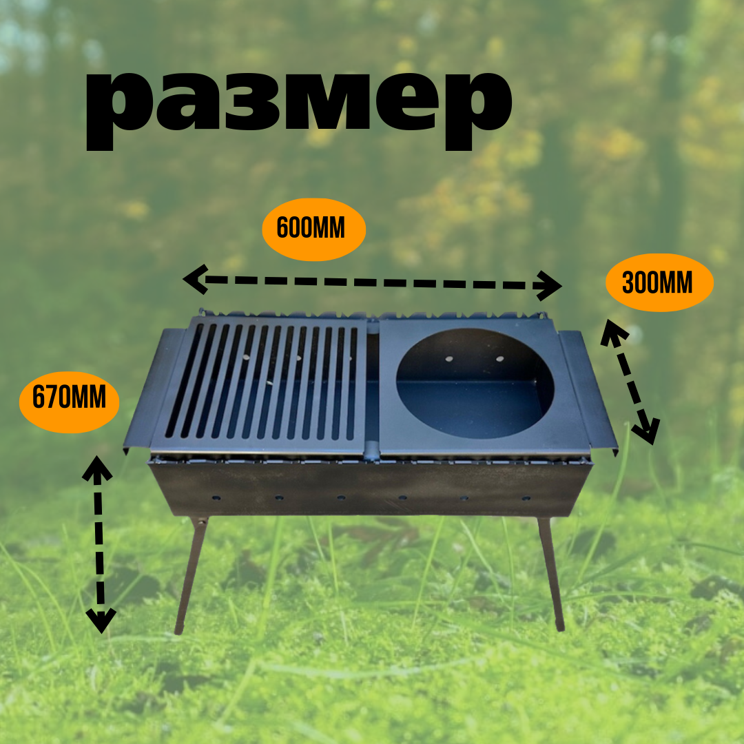 Мангал складной 600 мм с полкой-решеткой и полкой под казан, сталь 3 мм интересное: