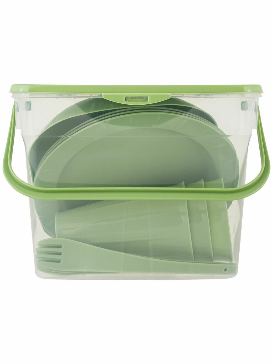 | Дополнительная информация | набор для пикника на 3 персоны, включает 11 предметов, контейнер объемом 4,5л с ручкой, салатник объемом 1,3л, порционные тарелки, стаканы и вилки, изготовлен из полипропилена, температурный режим от -5°C до +70°C, компактный и удобный для переноски, прочный пластик подходит для маринадов и горячего, стильный дизайн и высококачественные материалы, станет украшением стола и подчеркнёт ваш вкус |