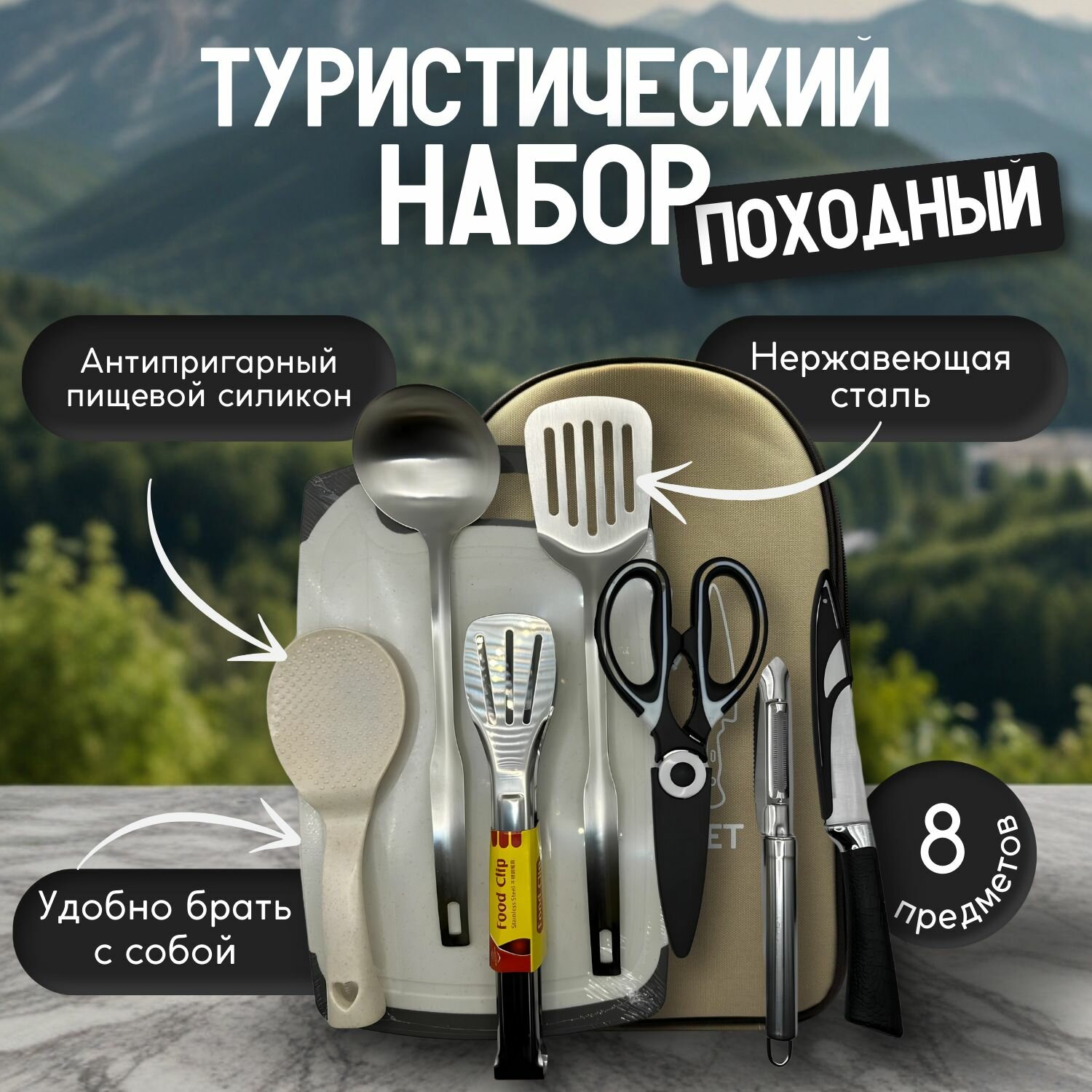 Туристический набор столовой посуды для пикника, для отдыха на природе. интересное: