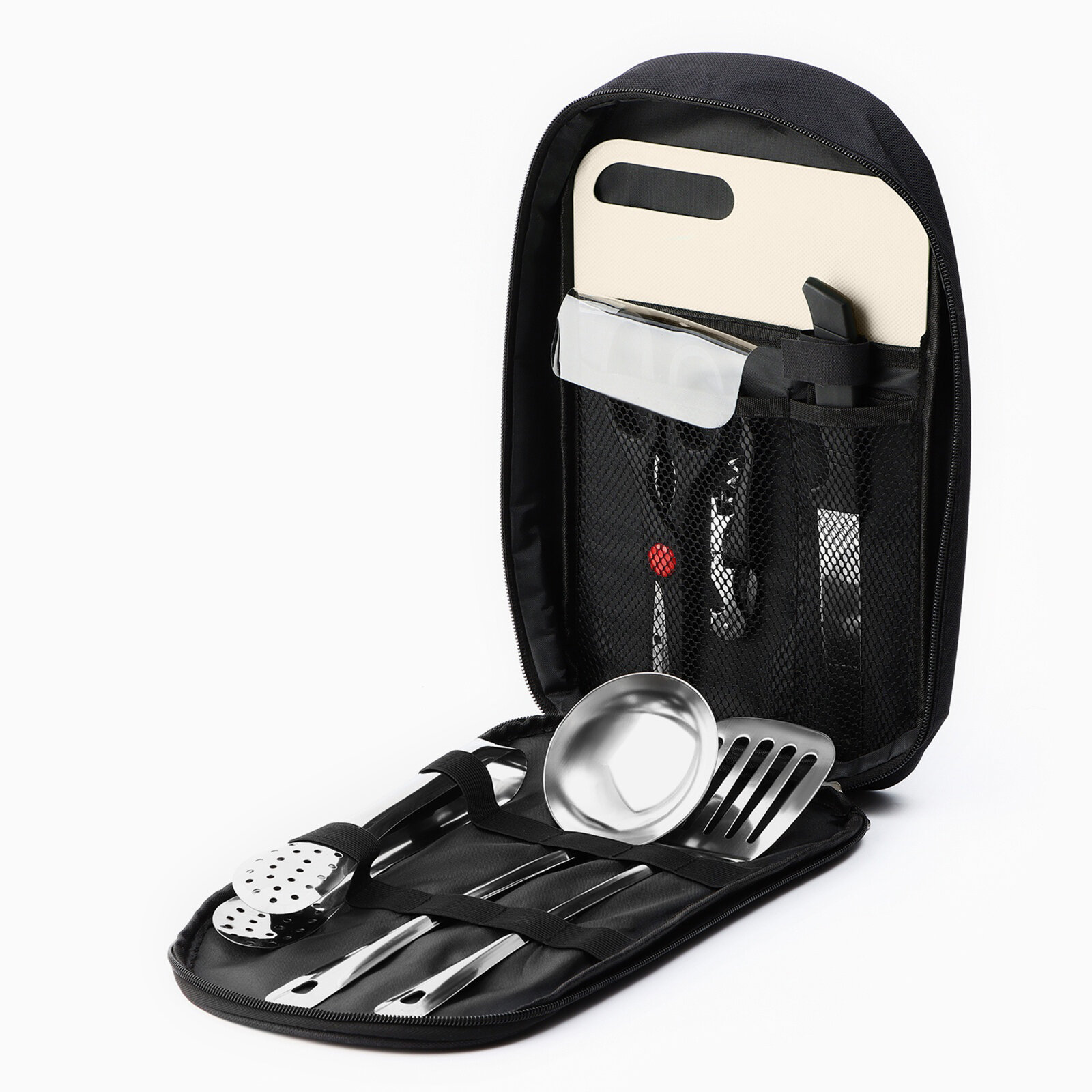| Дополнительная информация | набор для пикника; туристический; пикник; для кемпинга; комплект; для активного отдыха; чехол; ковш; кухонная лопатка; нож; ножницы; штопор; щипцы; разделочная доска; коррозионно-стойкая сталь; пикник на природе; аксессуар; подарок туристу |