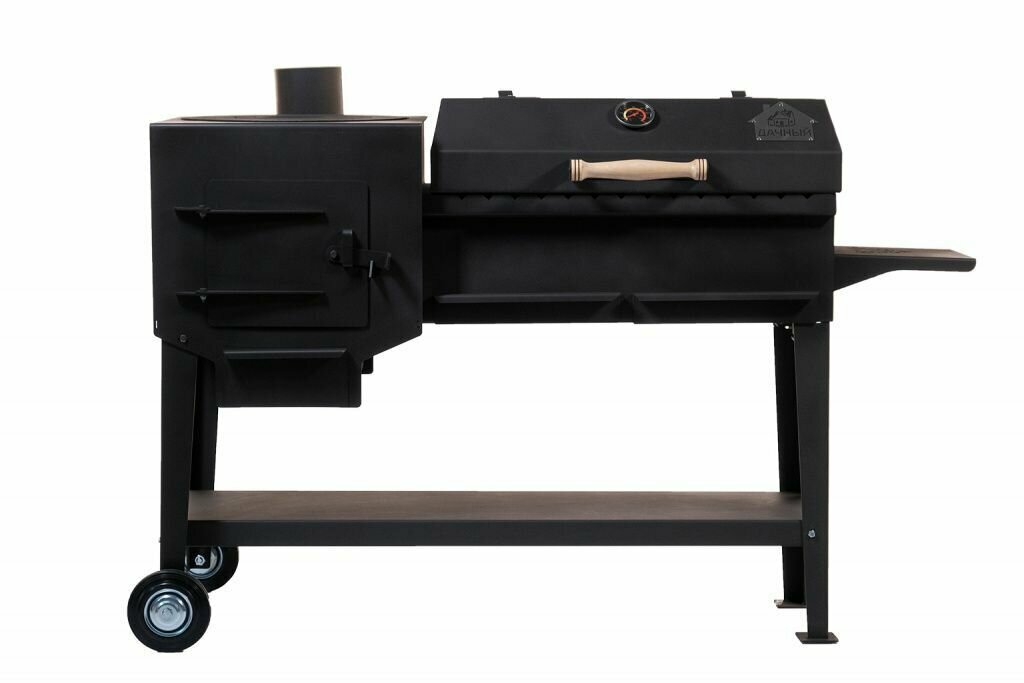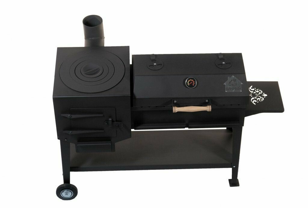 | Особенности | Боковой столикДровницаНожкиРегулировка подачи воздухаТермометр |