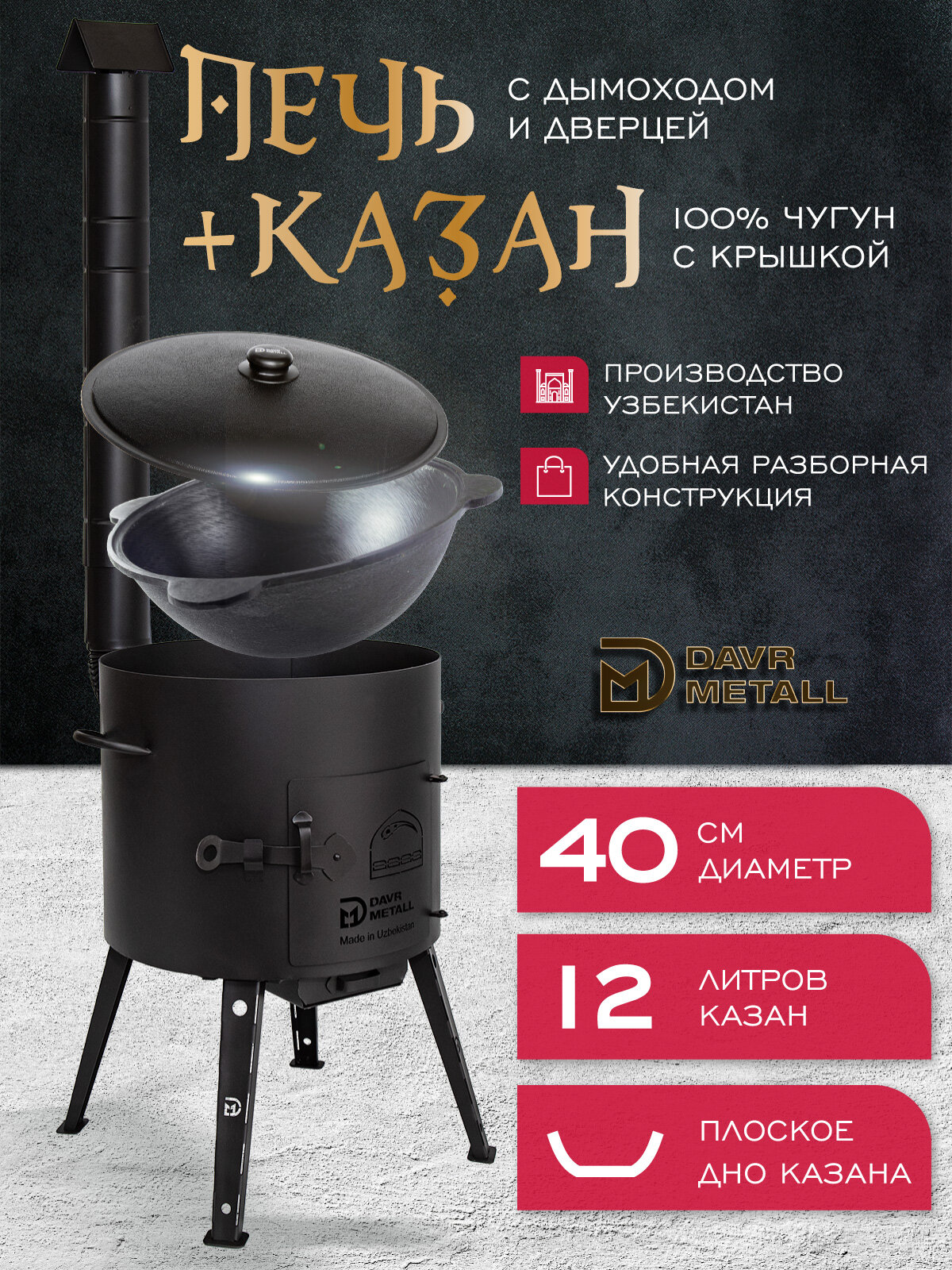 Комплект казан с печкой 12 л плоское дно, с дымоходом, съемные ножки интересное: