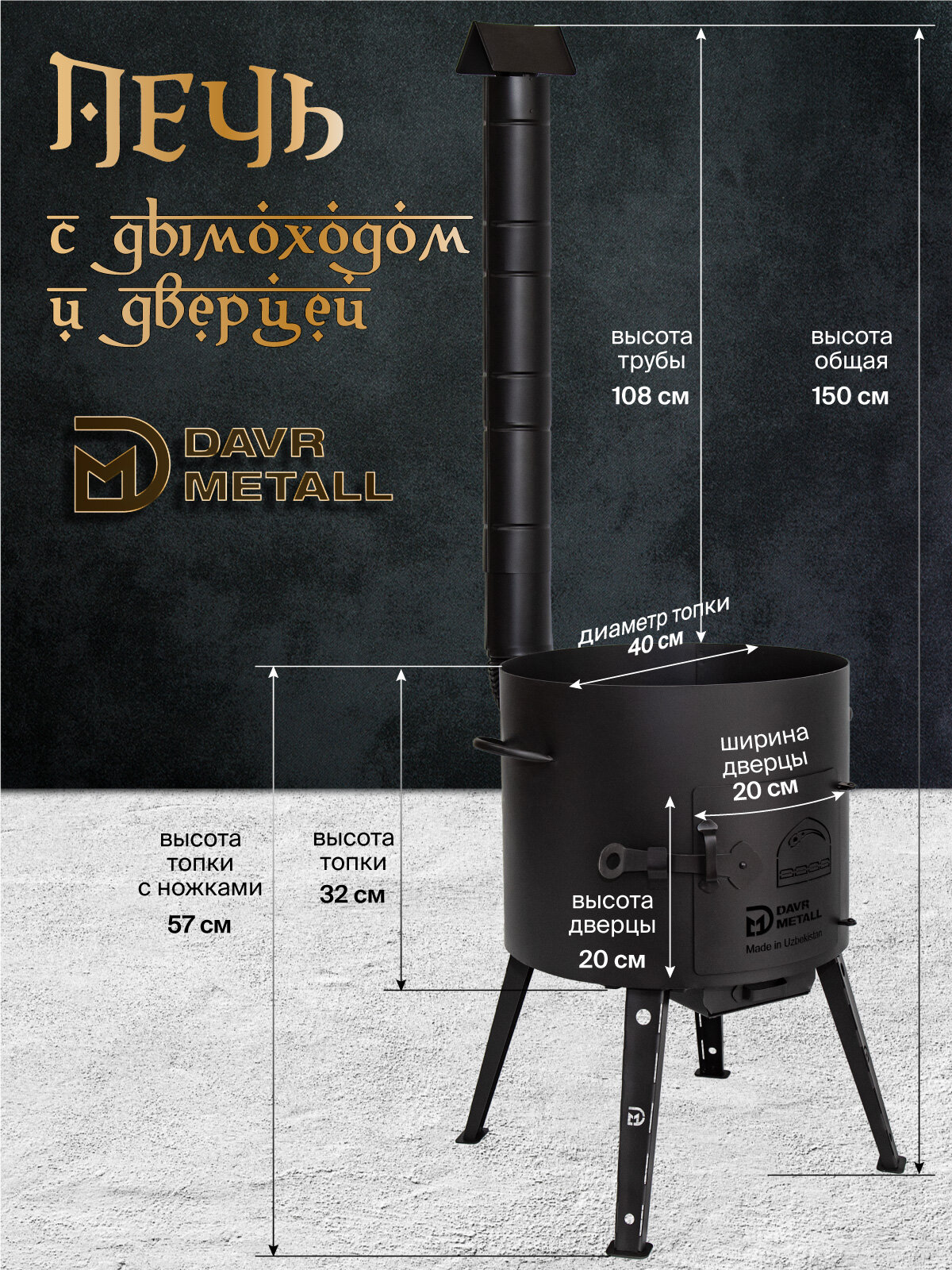 Печь для казана объемом 10 литров с ручками, съемные ножки, зольник