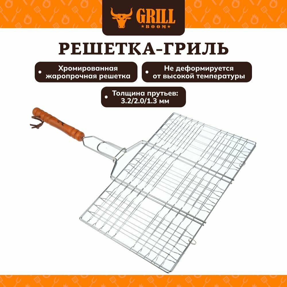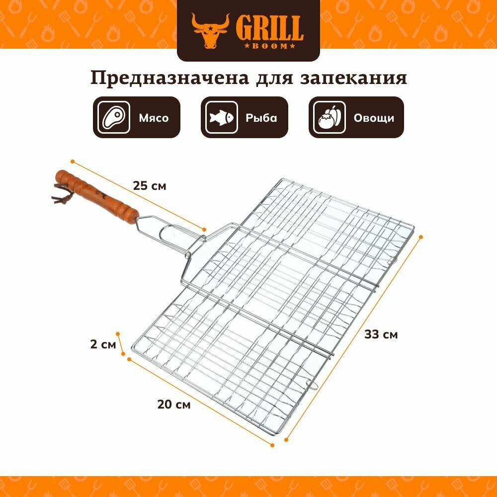 Решётка-гриль 27x32x6 см GRILLBOOM/ решетка для гриля, шашлыка, барбекю/ сетка на мангал