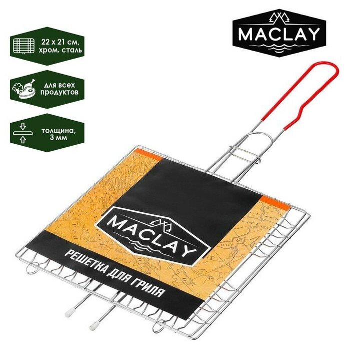 Решётка-гриль Maclay, универсальная, хромированная сталь, 46x21 см, рабочая поверхность 21x21 см