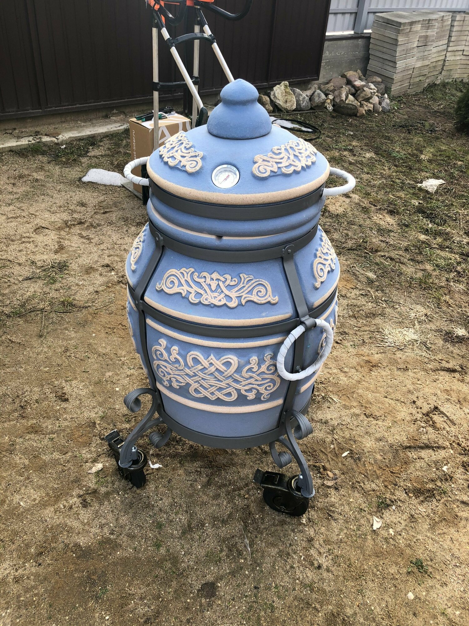 Тандыр Тамерлан со съемной крышкой, на колесах, цвет морская волна / чехол и сборник рецептов в подарок