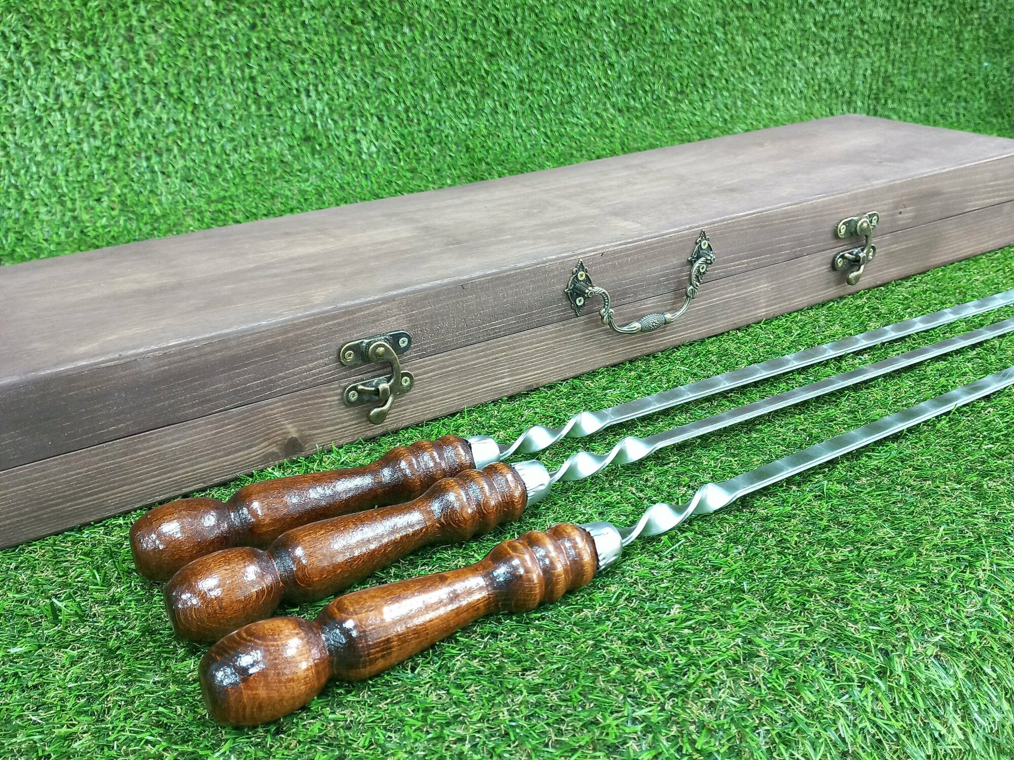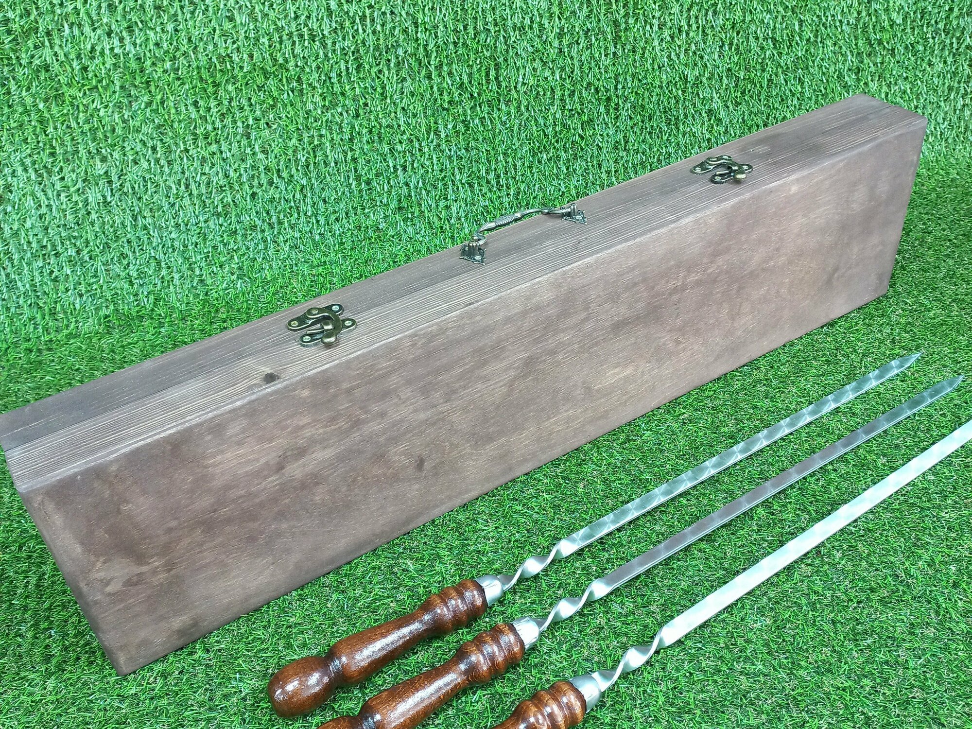 Набор шампуров с деревянной ручкой 62 см с ножом для снятия шашлыка