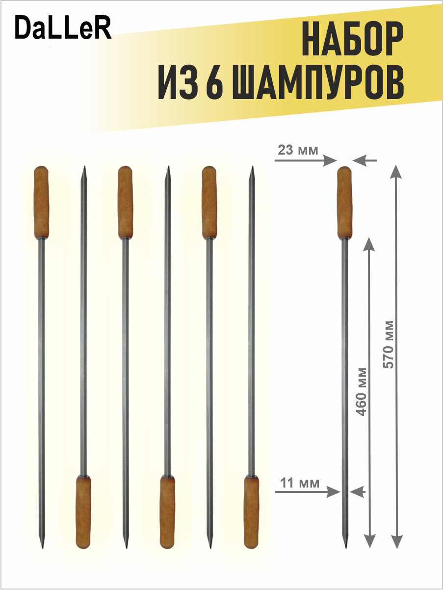Набор из 6 шампуров с деревянной ручкой интересное: