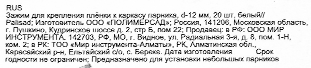 Зажим для крепления пленки к каркасу парника, D 12 мм, 20 шт, Palisad Россия интересное: