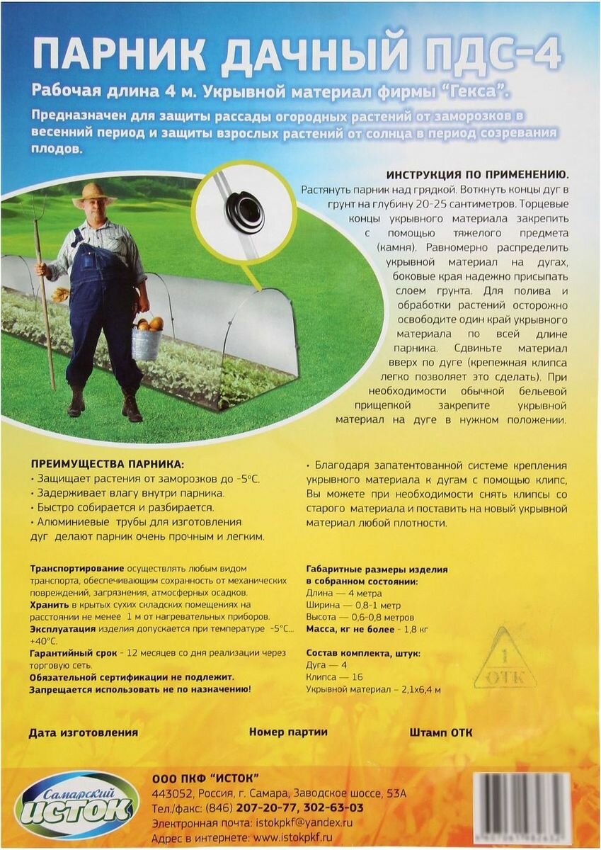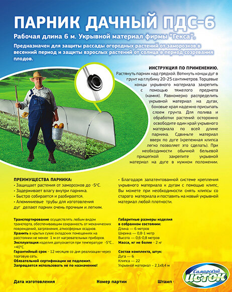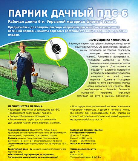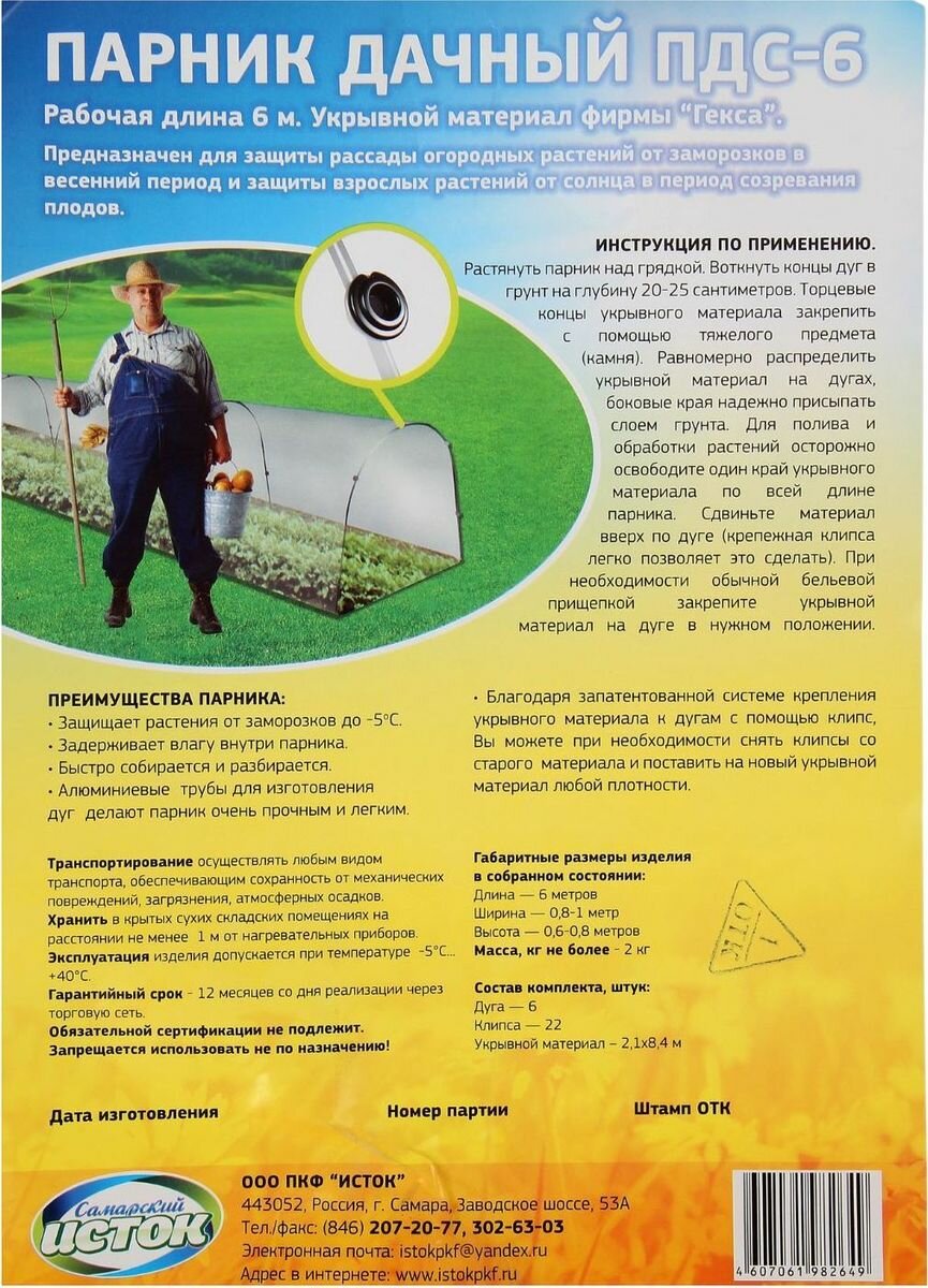 | Дополнительная информация | Большой парник дачный ПДС-6 тоннель длина 6 метров ширина 1 метр высота 96 см с качественным укрывным материалом и отличной плотностью 42 |