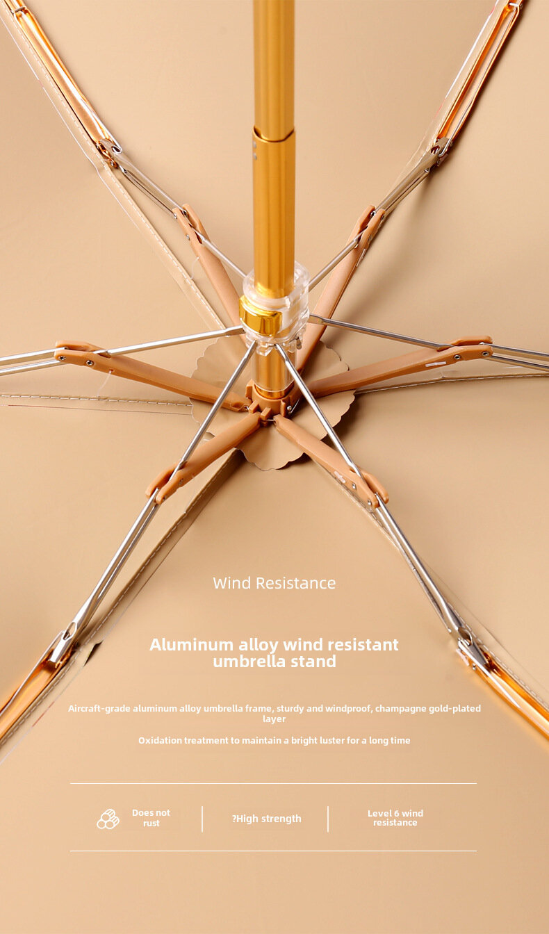 Зонт, 14см, складной, золотой, двойной, от солнца и дождя