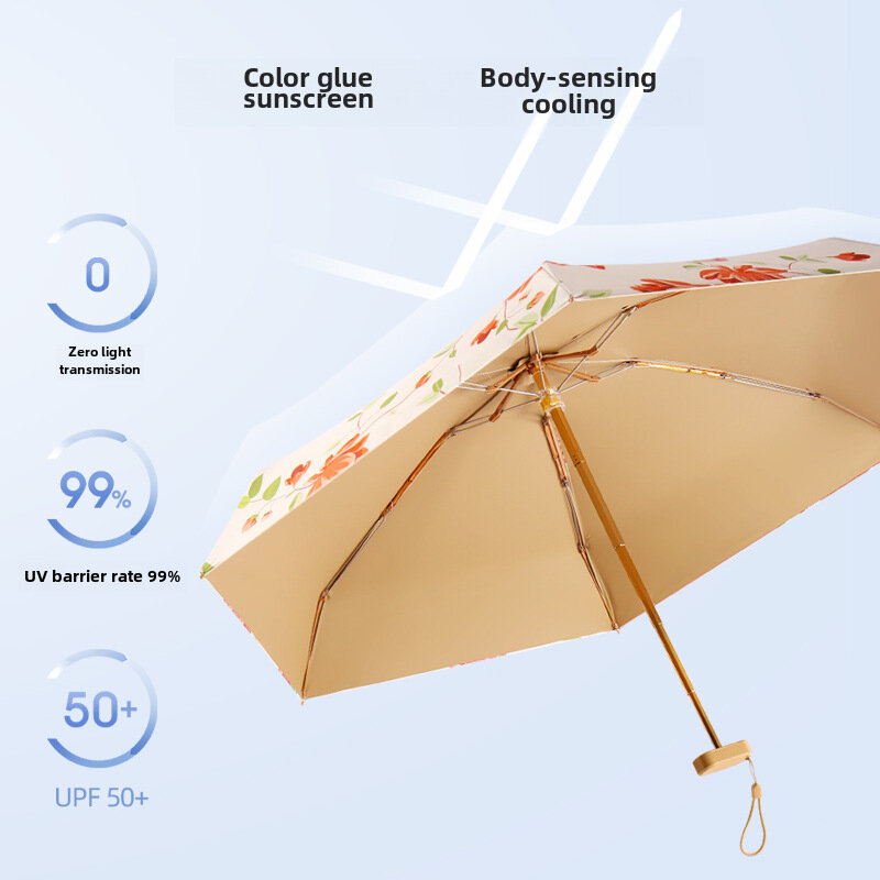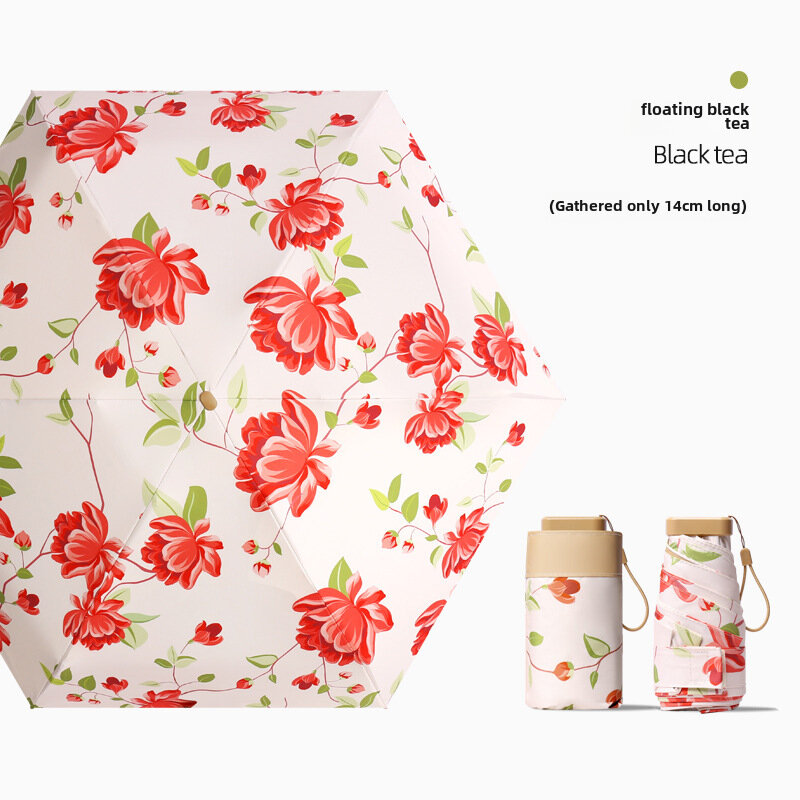 Зонт, 14см, 6-кратный, плоский, мини-карманный, солнцезащитный, женский, двойной, компактный, портативный