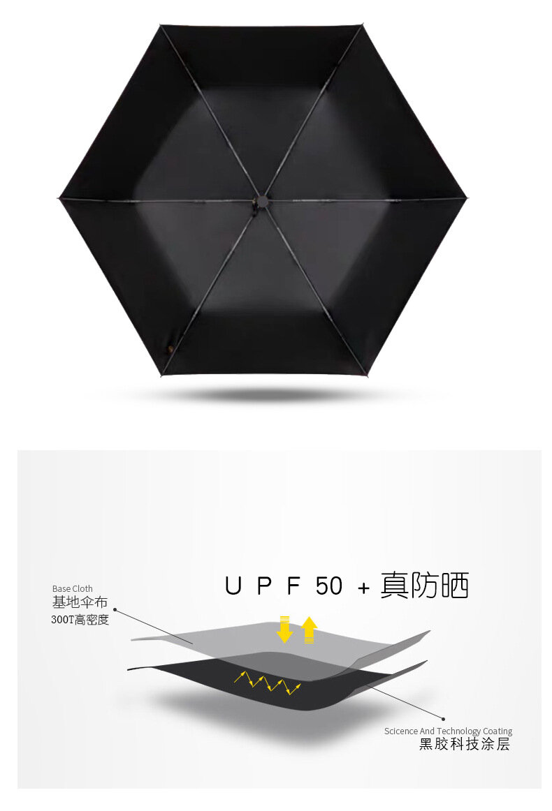 Купить Зонт, трехстворчатый, с солнцезащитой, складной, черный, 53см*6к
