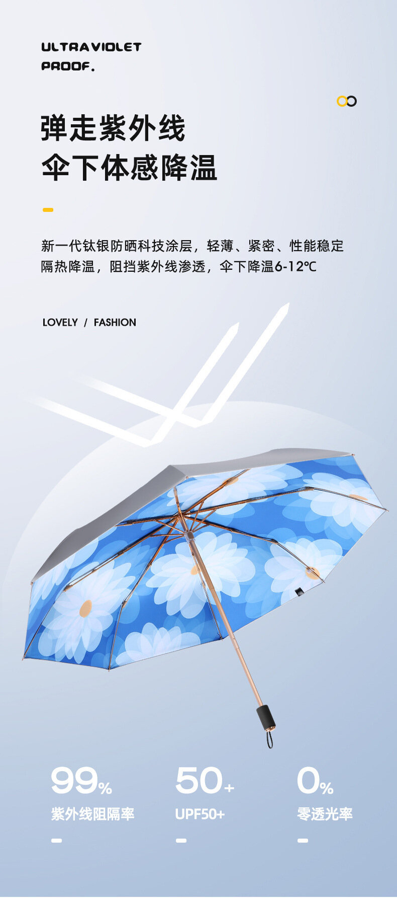 Зонтик, титановый, UPF50, защита от ультрафиолета