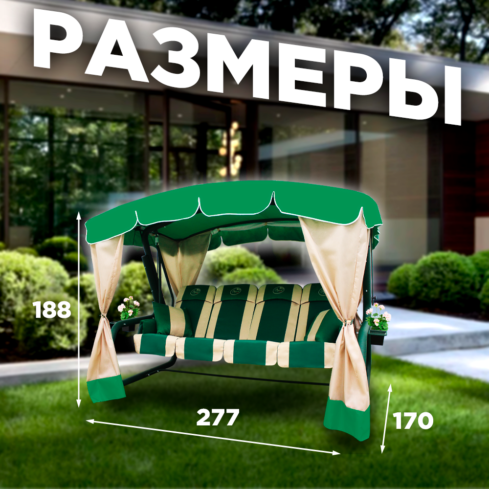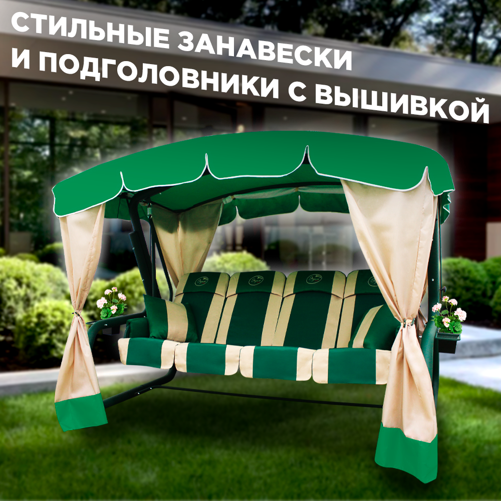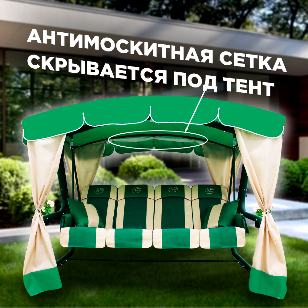 Садовые качели эдем люкс для дачи уличные 4-местные подвесные с тентом и москитной сеткой зеленый интересное: