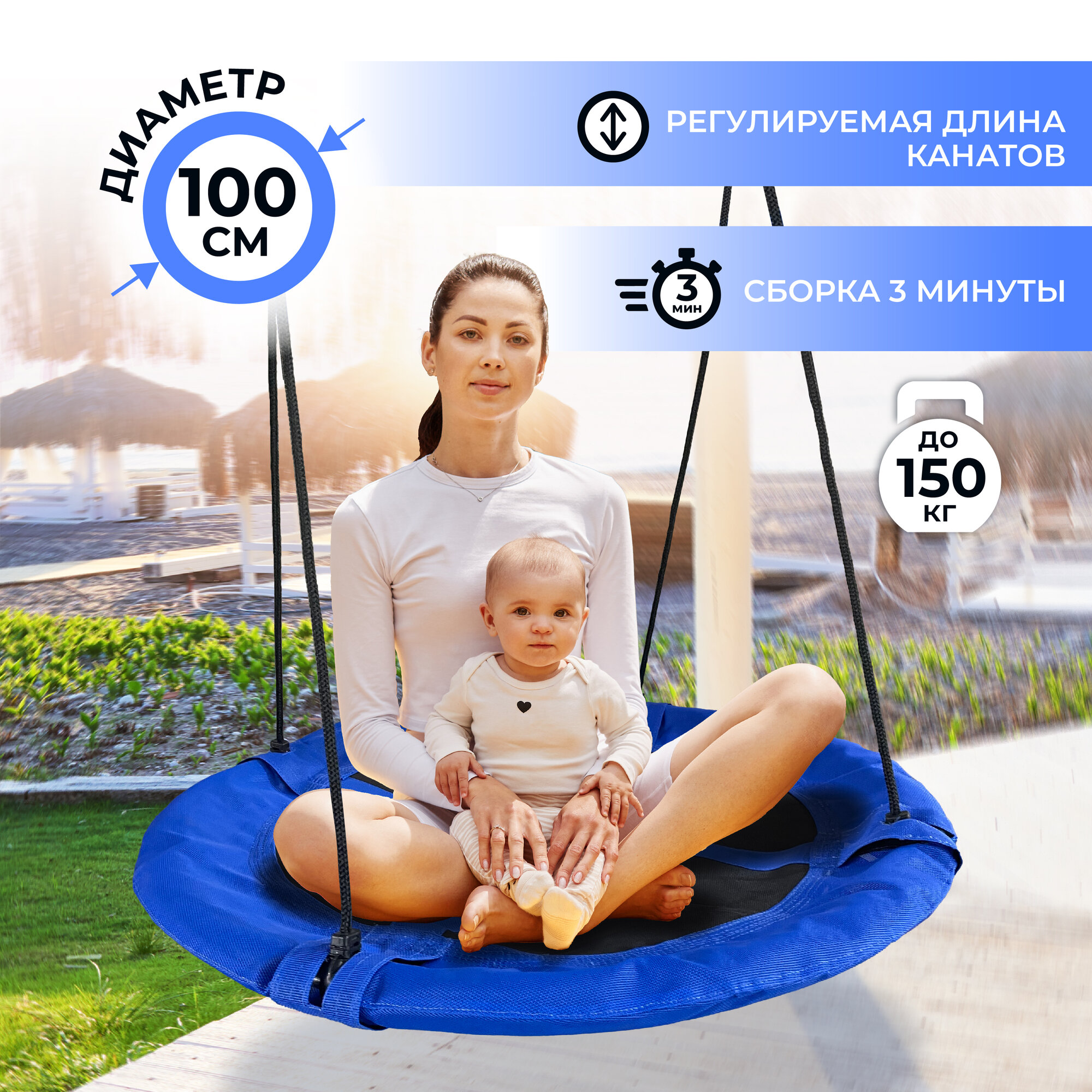 Кресло гамак подвесное Nest, качели гнездо садовые, взрослые, качалка диаметр 100 см, синий, черный, АМИ мебель интересное: