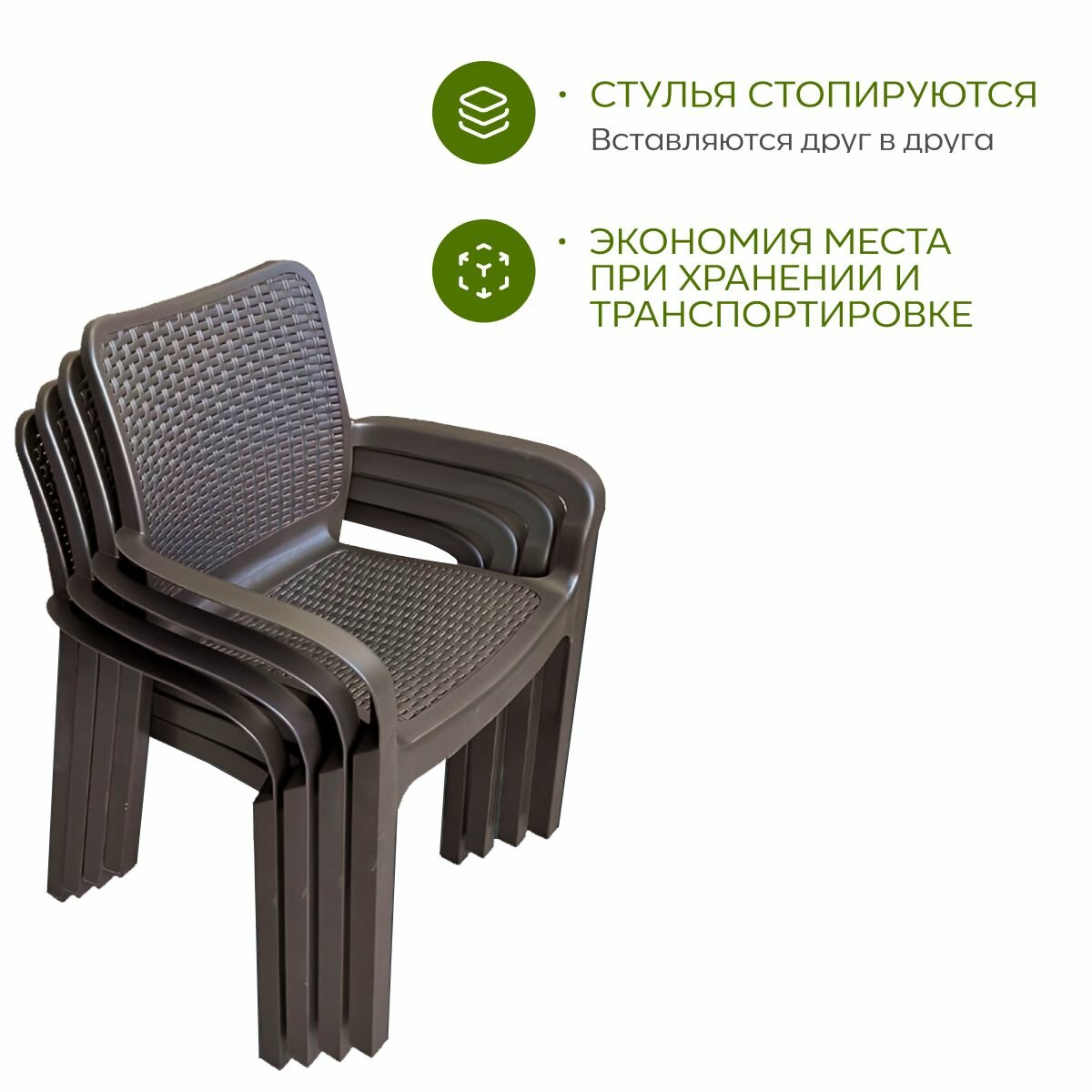 | Комплектация | Пластиковый стул Саманна Rattan шоколад - 4 шт |