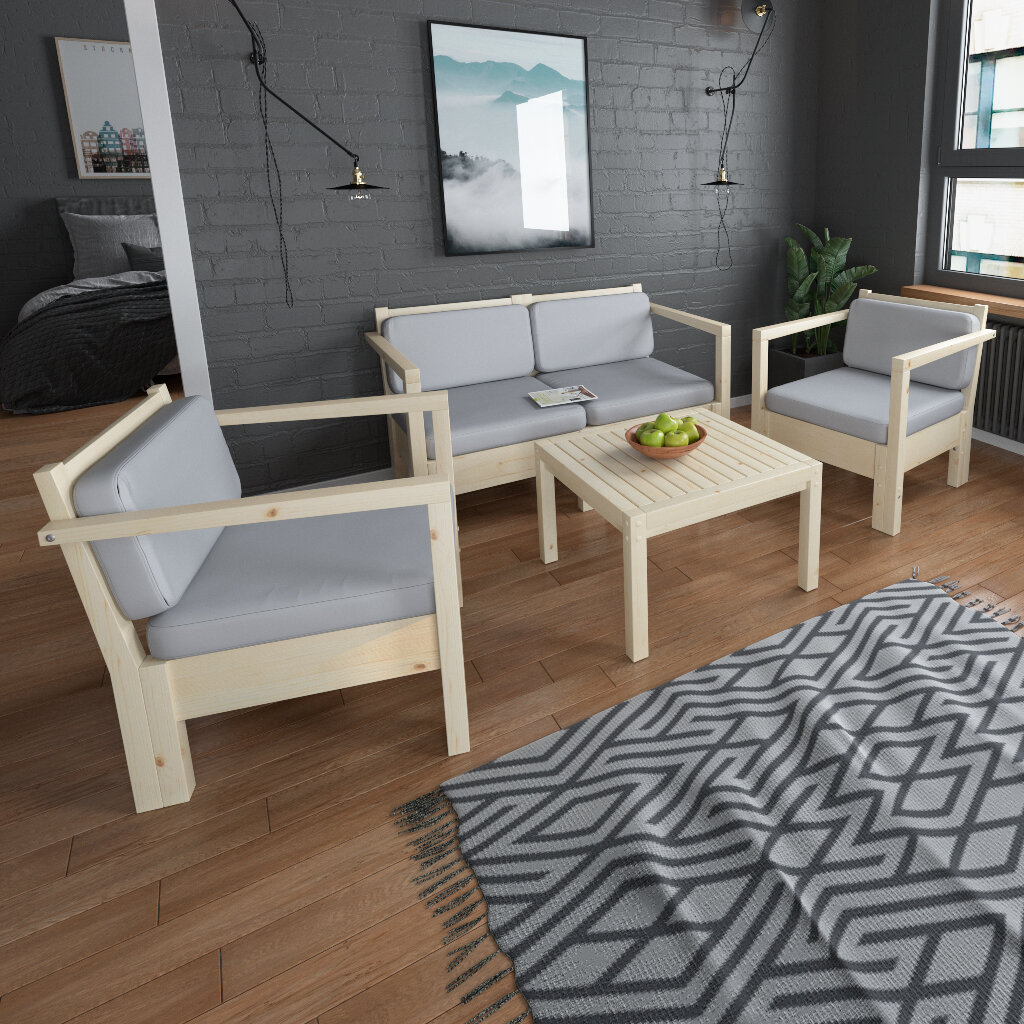 Комплект мебели Лаунж на 4 человека (Диван+2 кресла+столик) КМЛС-03 интересное: