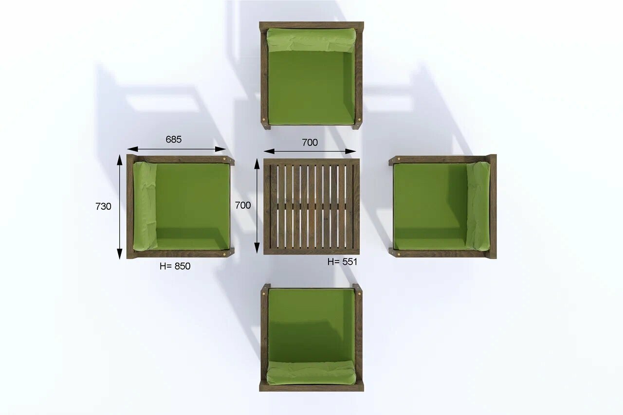 Wooden-World Комплект садовой мебели "на 8 человек" складной деревянный (Стол, Скамейки, Стулья)