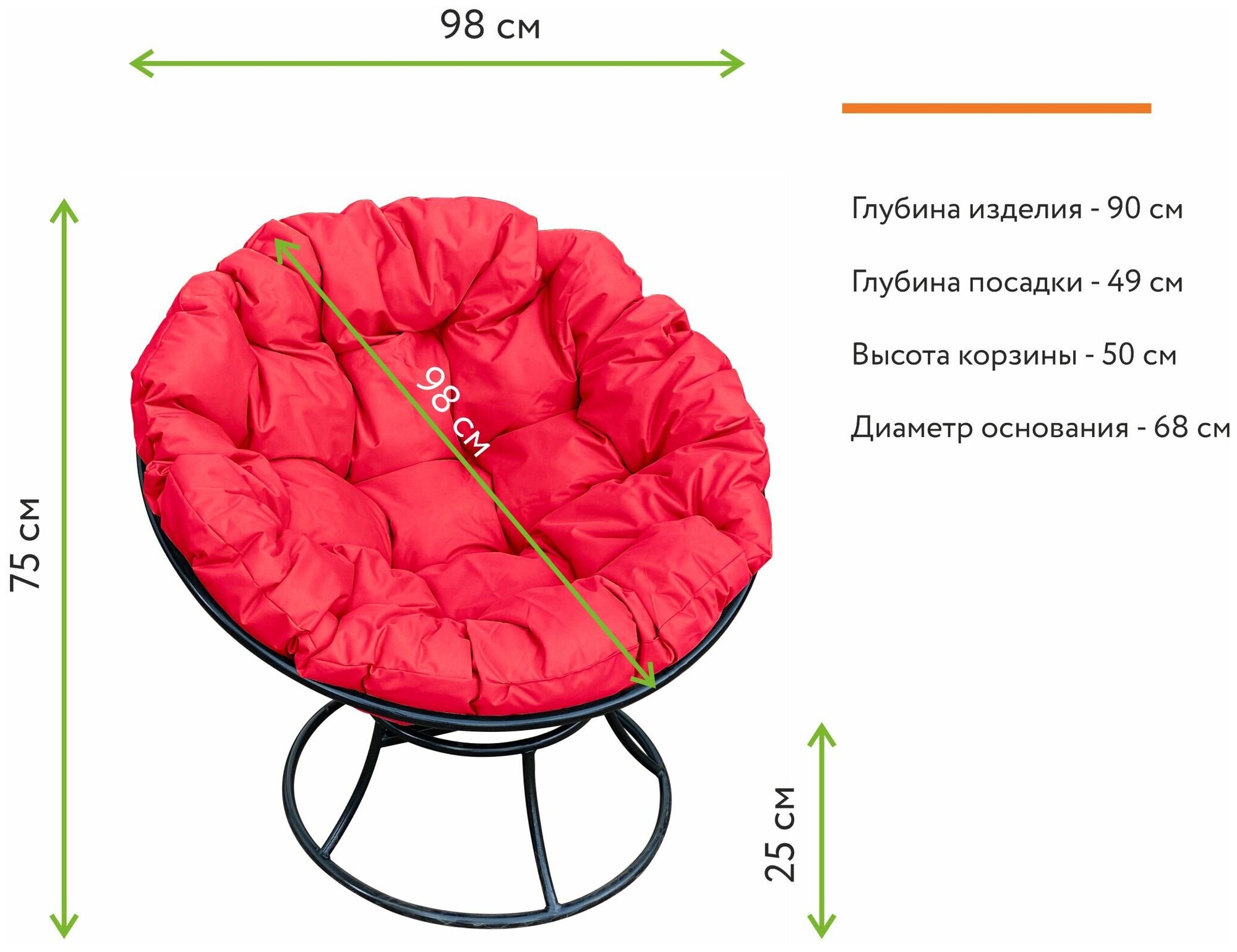 Кресло M-group папасан без ротанга чёрное красная подушка Размеры: Высота 750мм Глубина 970мм Ширина 970мм