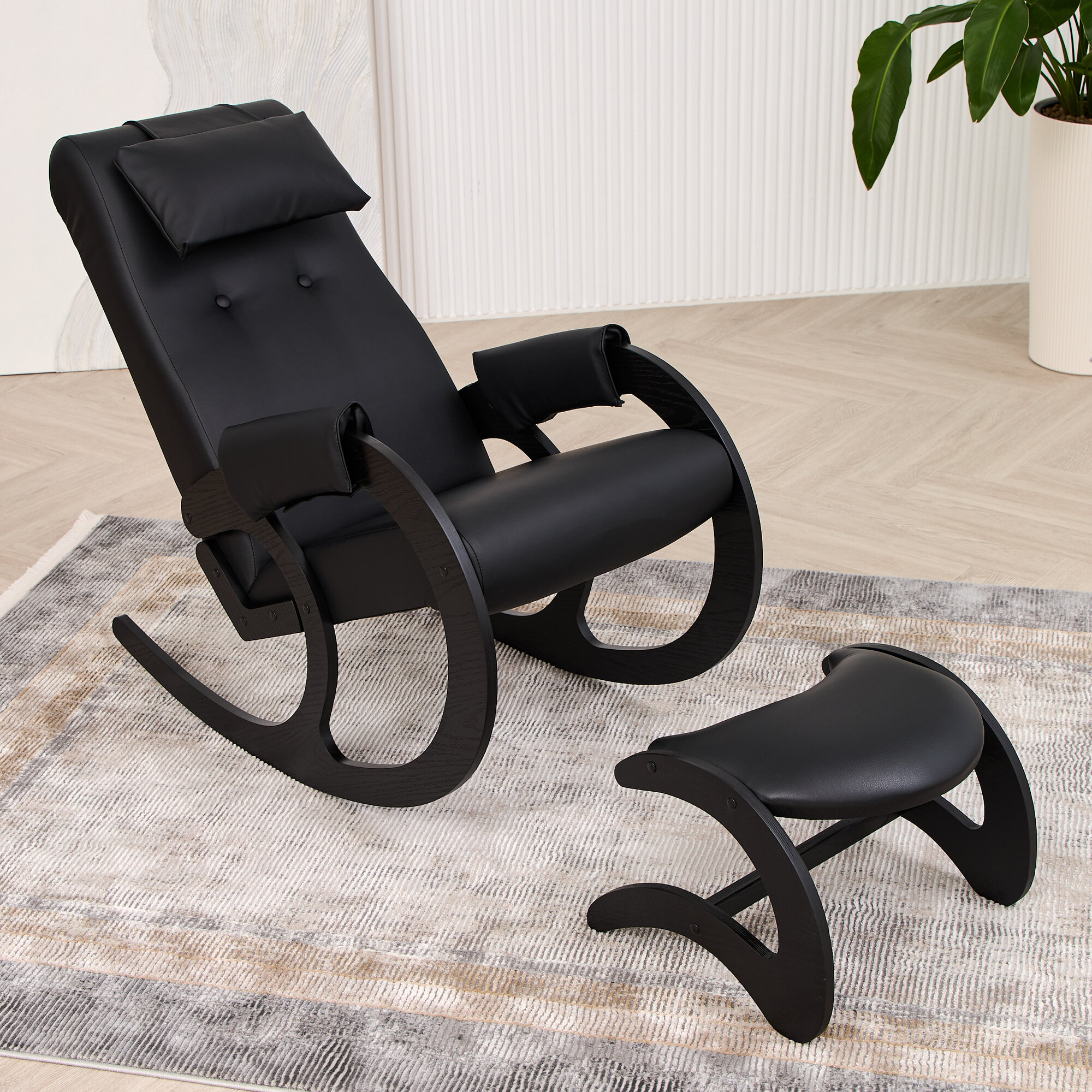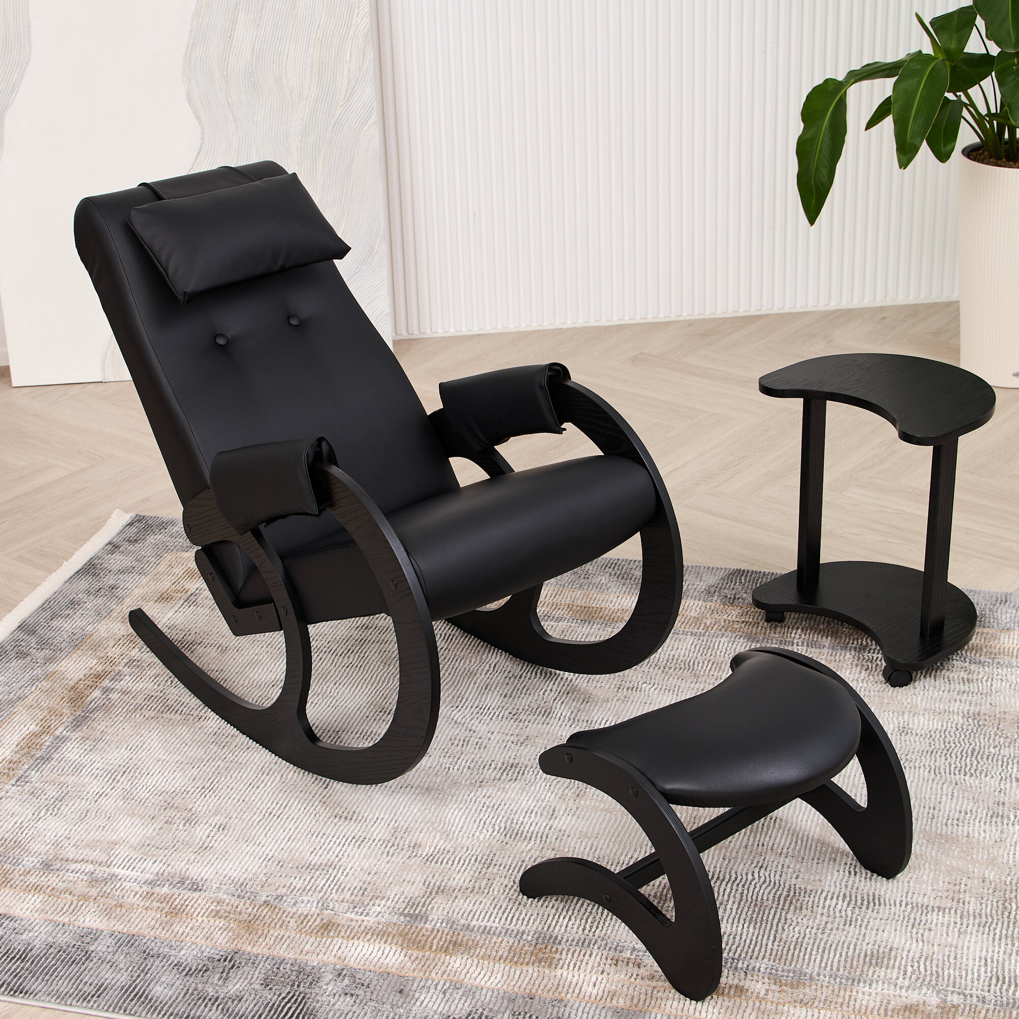 Кресло-качалка AVK "Блюз", 3 в 1, с банкеткой и столиком, экокожа, цвет шоколад