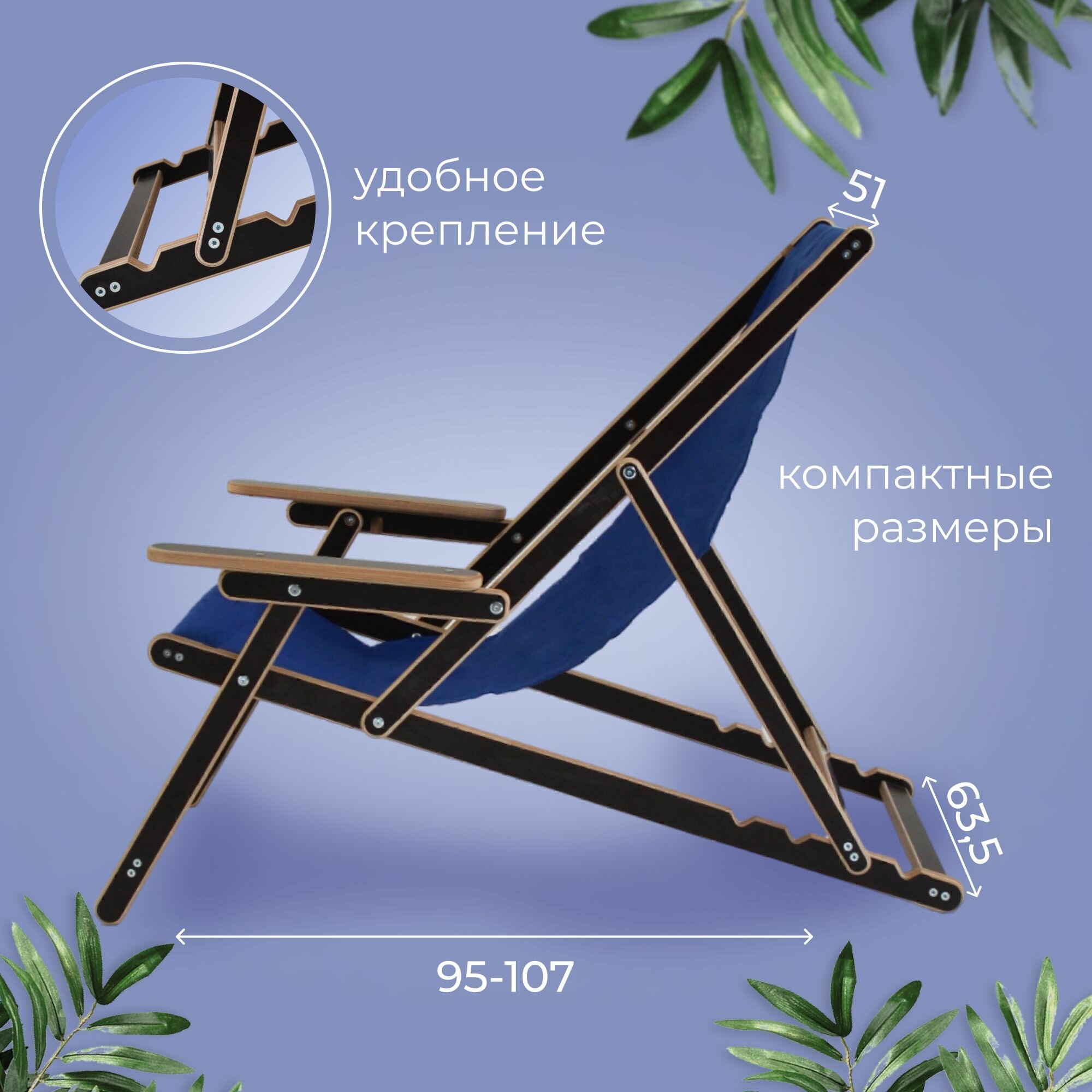Кресло-шезлонг "Элби" с подлокотниками ламинированный с темно-синей тканью для дома и для дачи