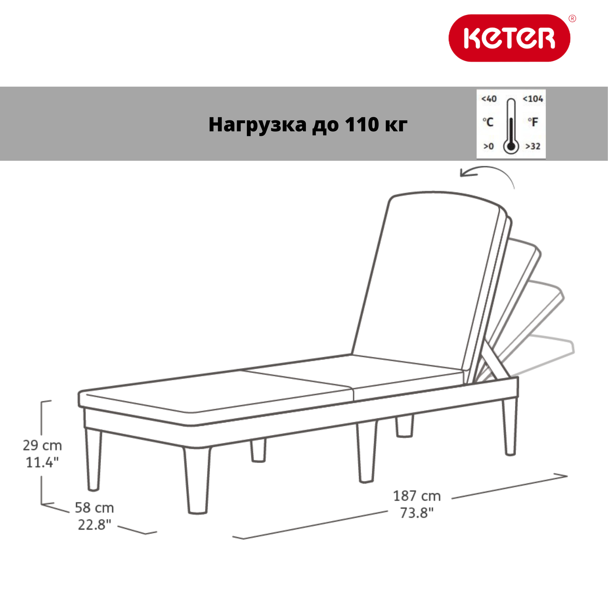 Шезлонг Keter Jaipur 17207188, складной, с матрасом, с регулировкой наклона спинки