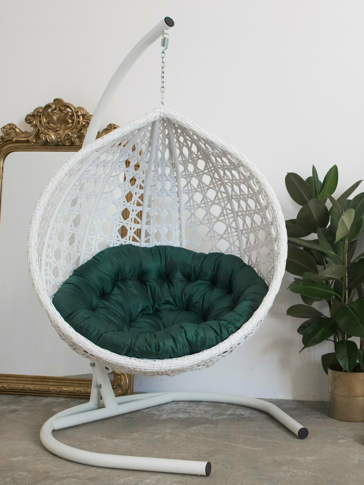 СохранитьПодвесное кресло кокон садовое Barberries Yova DeLuxe Cross. Стойка белая до 225 кг, подушка круглая зеленая интересное: