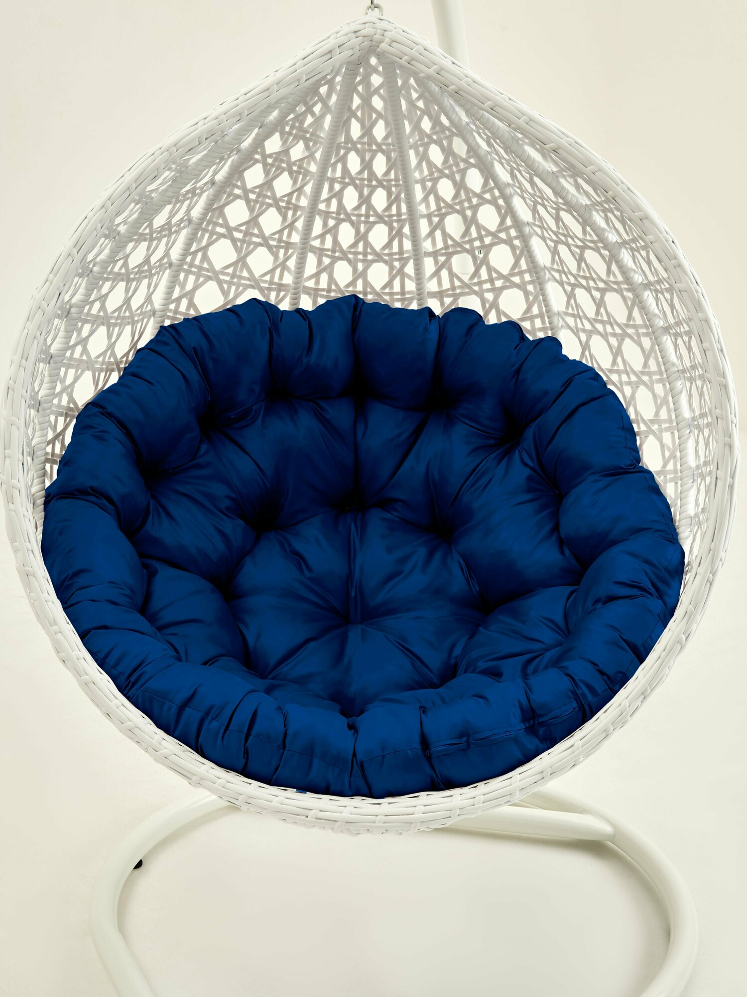 Купить Подвесное кресло кокон садовое Barberries Yova DeLuxe Cross. Стойка белая до 225 кг, подушка круглая синяя