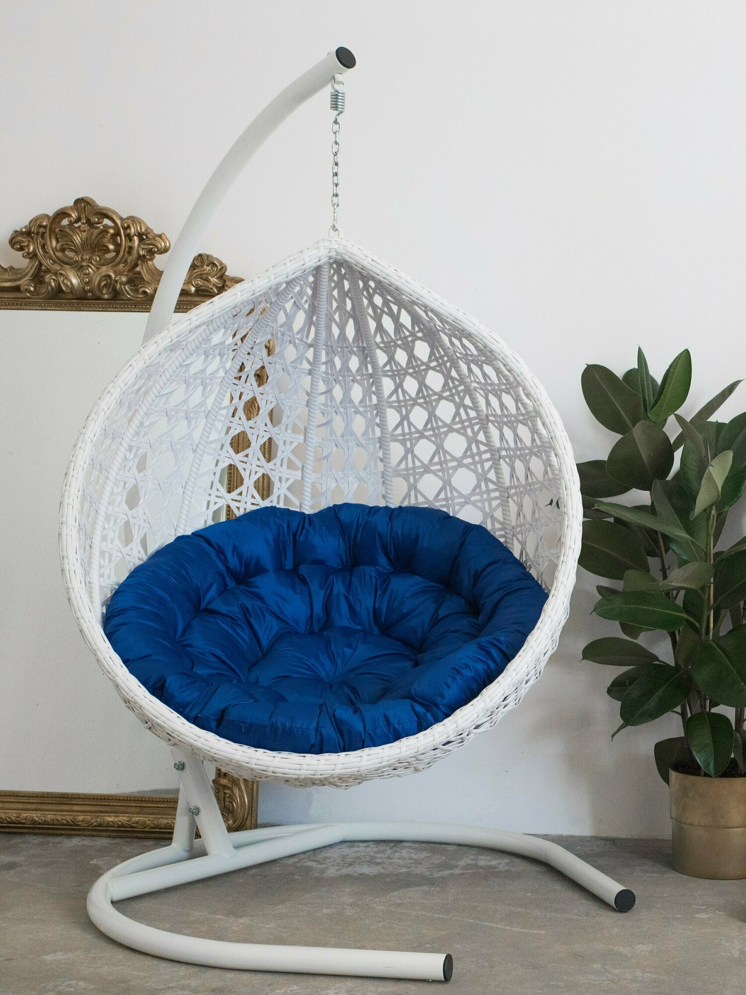 СохранитьПодвесное кресло кокон садовое Barberries Yova DeLuxe Cross. Стойка белая до 225 кг, подушка круглая синяя интересное: