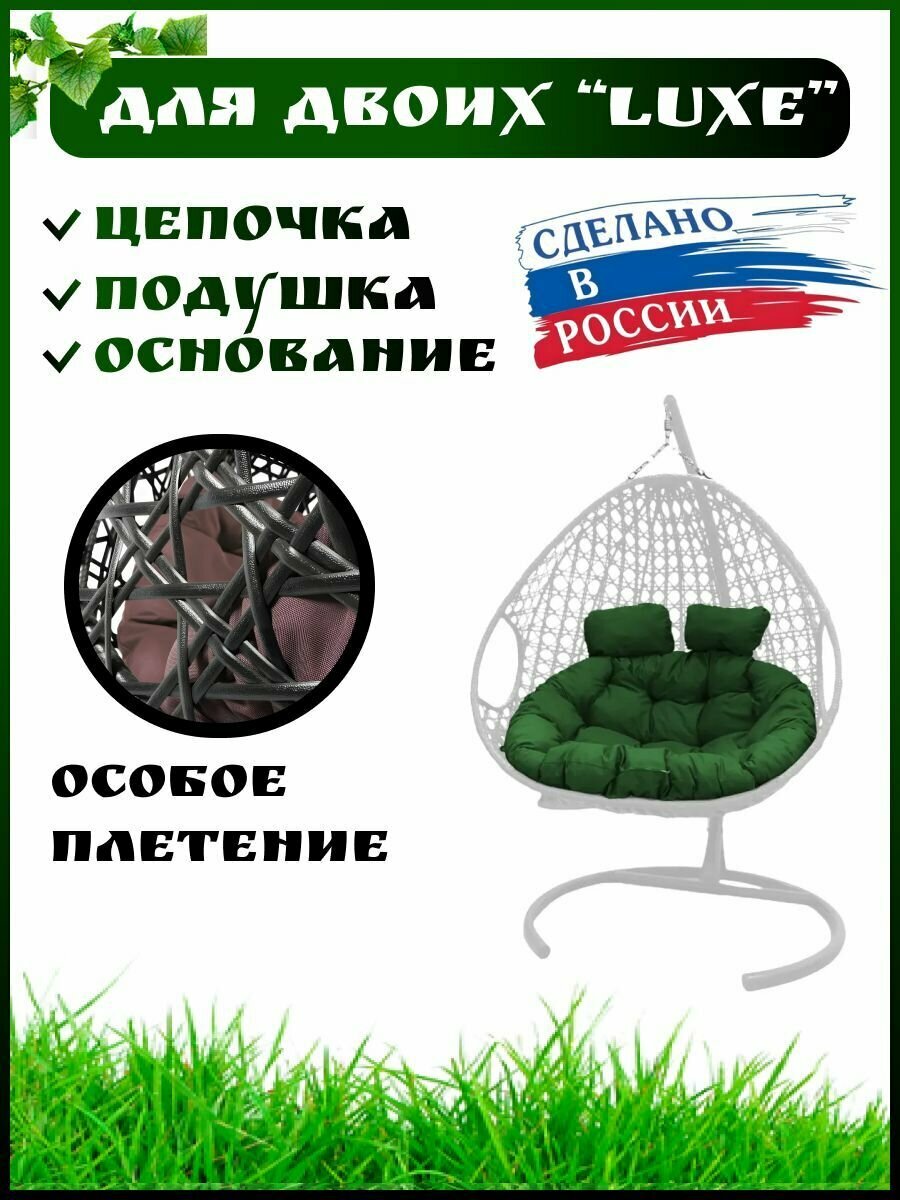 Сохранитькресло кокон подвесное на стойке плетение (LUXE) белая стойка зеленая подушка / садовые качели интересное: