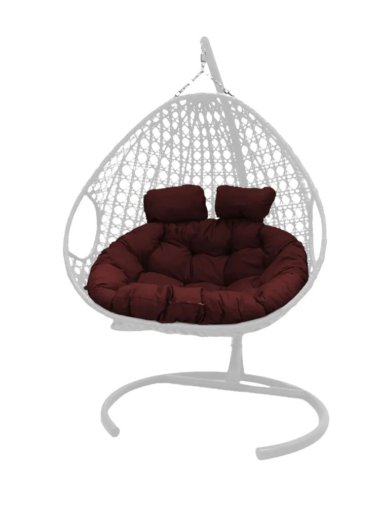 кресло кокон подвесное на стойке плетение (LUXE) Белая стойка бордовая подушка