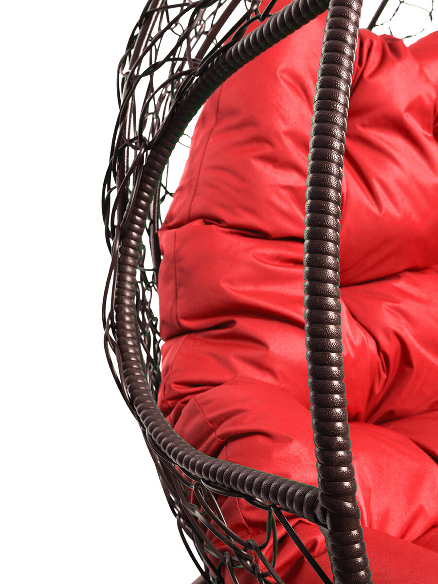Купить Подвесное кресло из ротанга "Для двоих" коричневое с красной подушкой M-GROUP