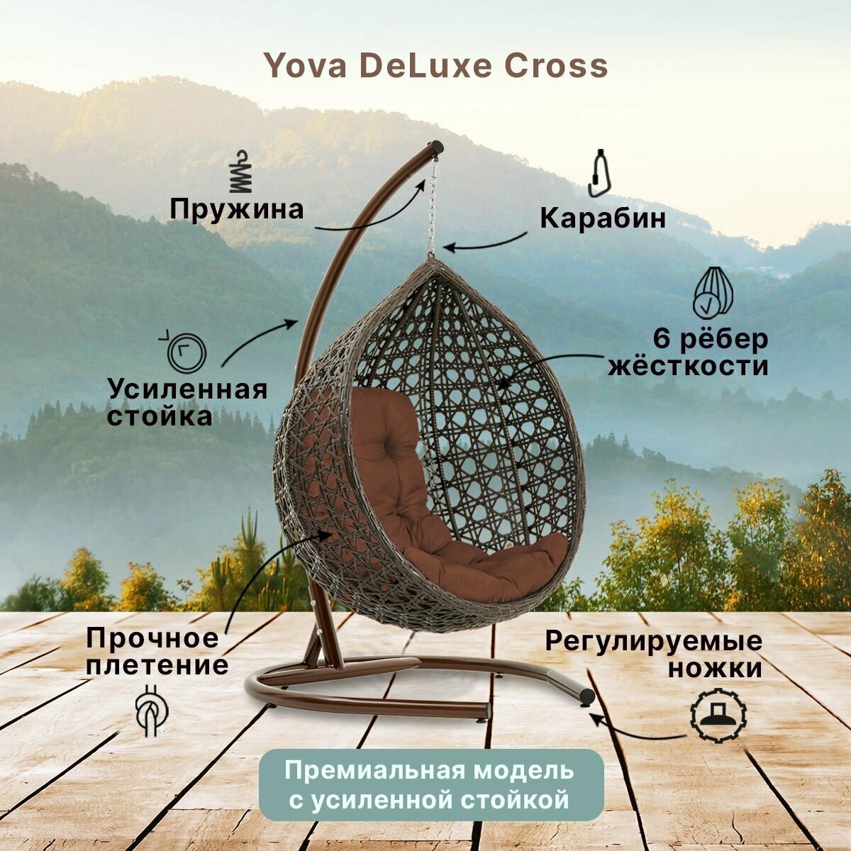 Купить Подвесное кресло кокон садовое Barberries Yova DeLuxe Cross. Стойка венге до 225 кг, подушка трапеция коричневая