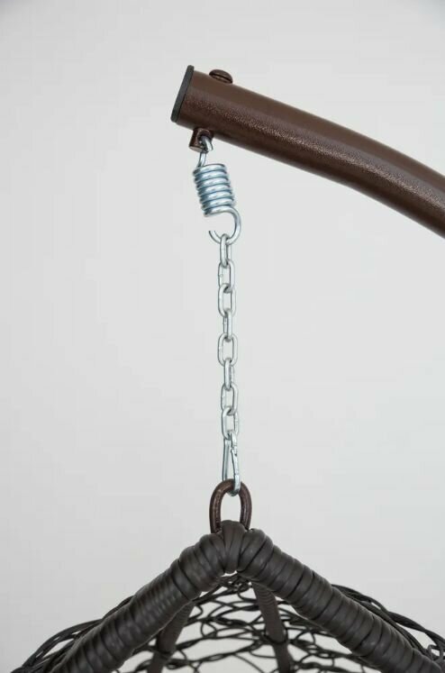 Подвесное кресло кокон садовое Barberries Yova DeLuxe Cross. Стойка белая до 225 кг, подушка трапеция коричневая