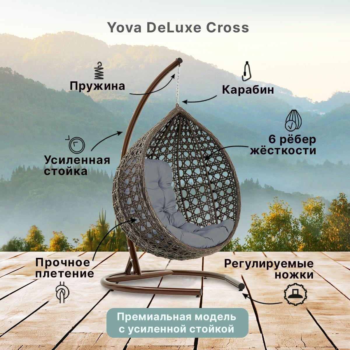 Купить Подвесное кресло кокон садовое Barberries Yova DeLuxe Cross. Стойка венге до 225 кг, подушка трапеция серая