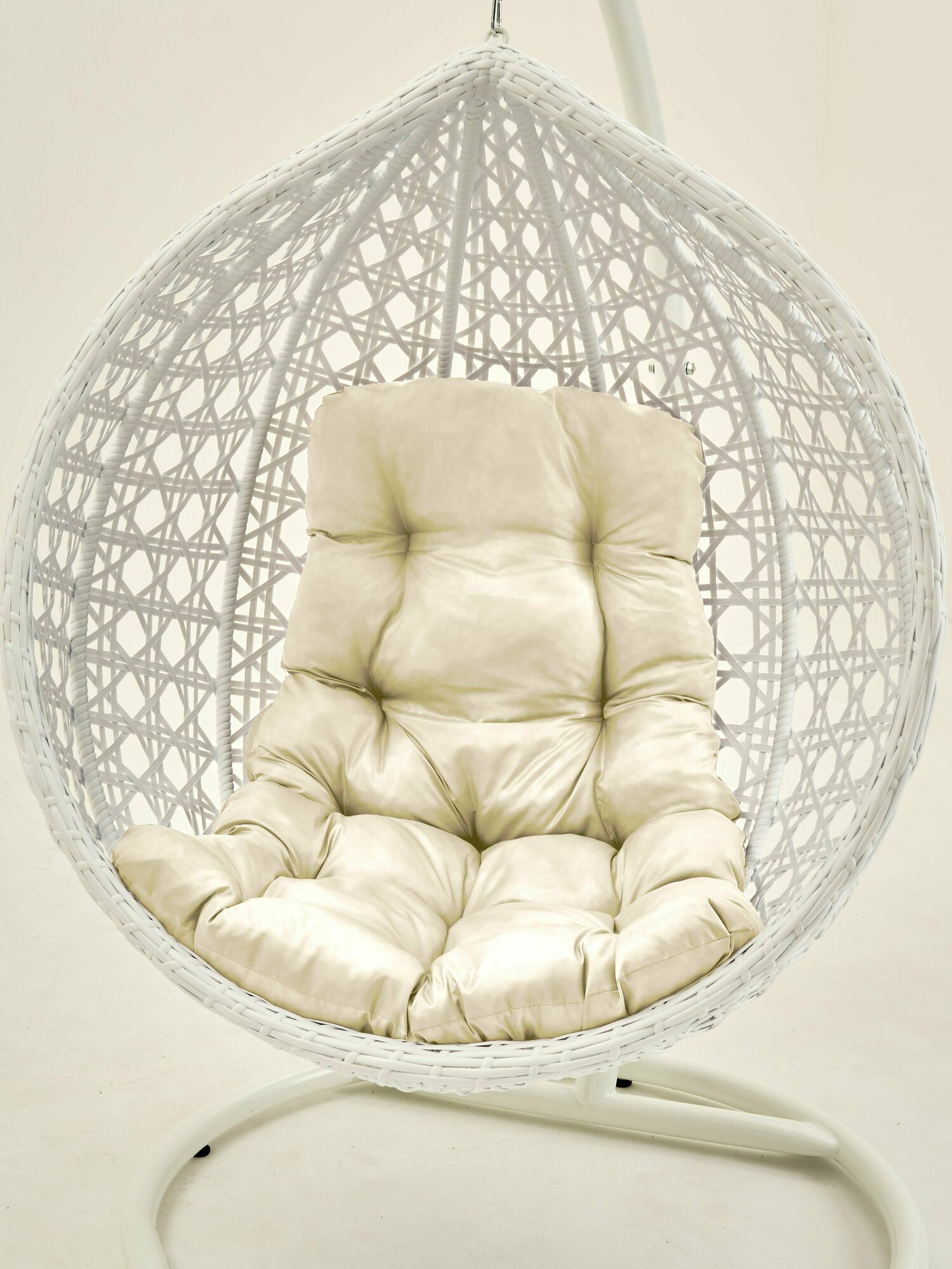 СохранитьПодвесное кресло кокон садовое Barberries Yova DeLuxe Cross. Стойка белая до 225 кг, подушка трапеция бежевая интересное: