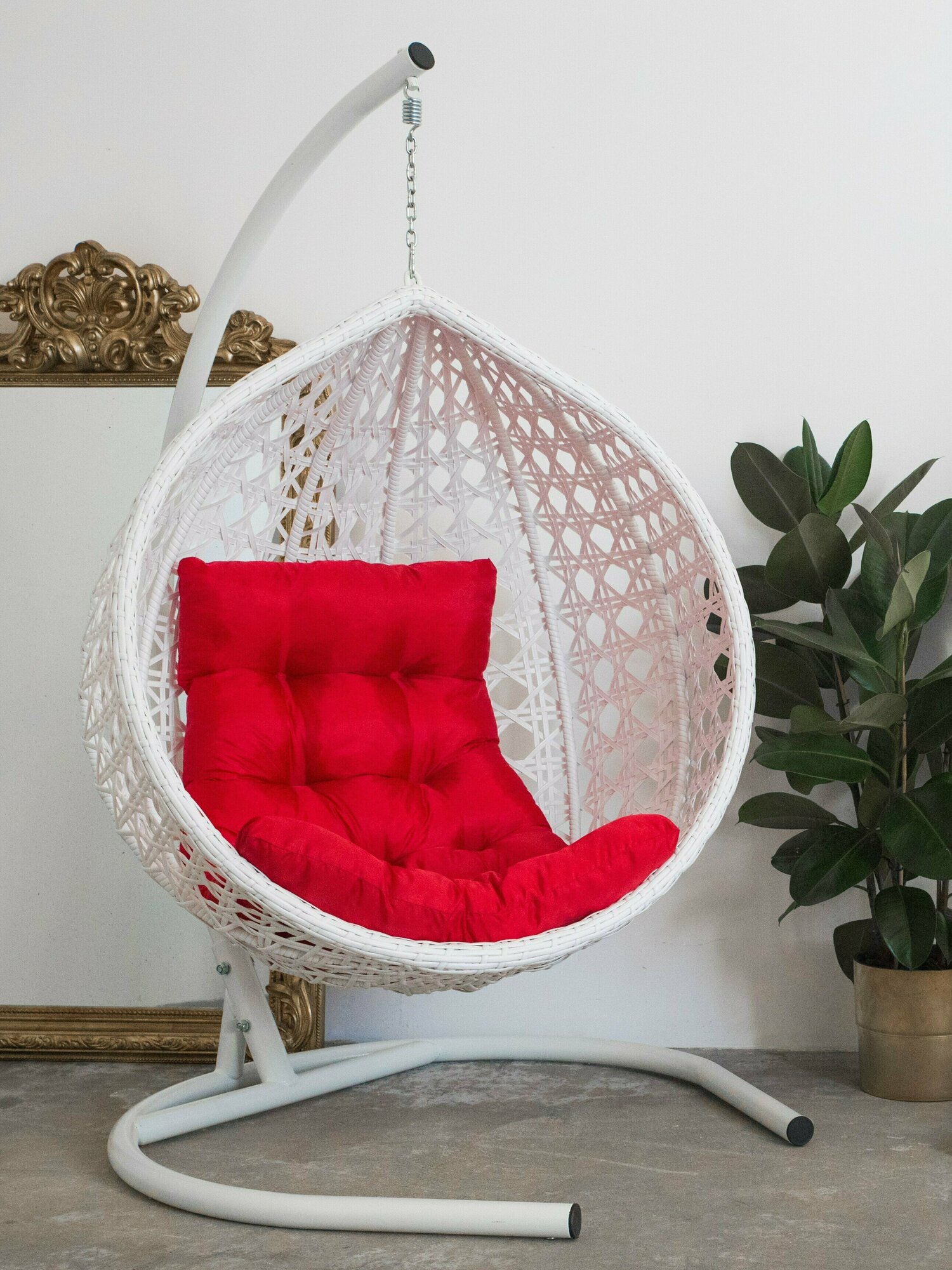 СохранитьПодвесное кресло кокон садовое Barberries Yova DeLuxe Cross. Стойка белая до 225 кг, подушка трапеция красная интересное: