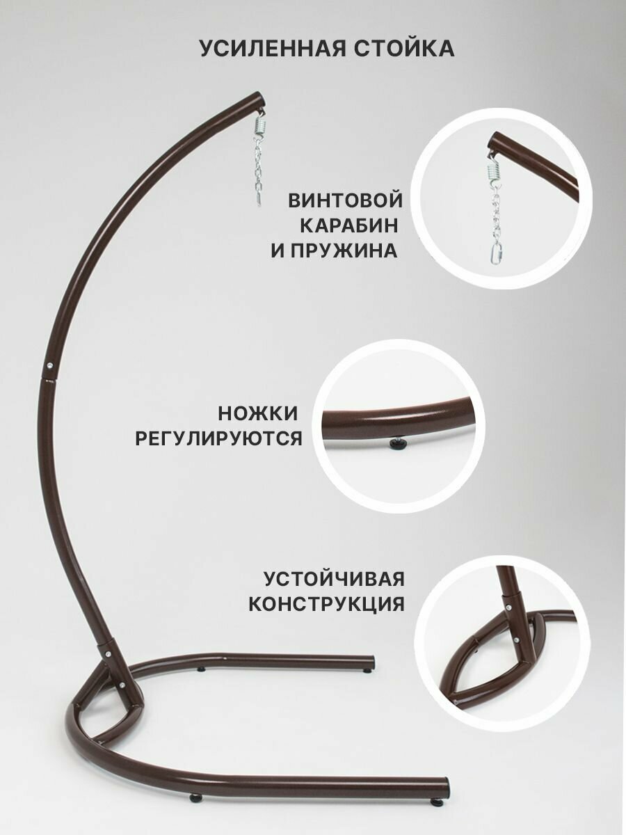 Подвесное кресло кокон садовое Barberries Yova Cross. Стойка белая до 225 кг, подушка трапеция коричневая