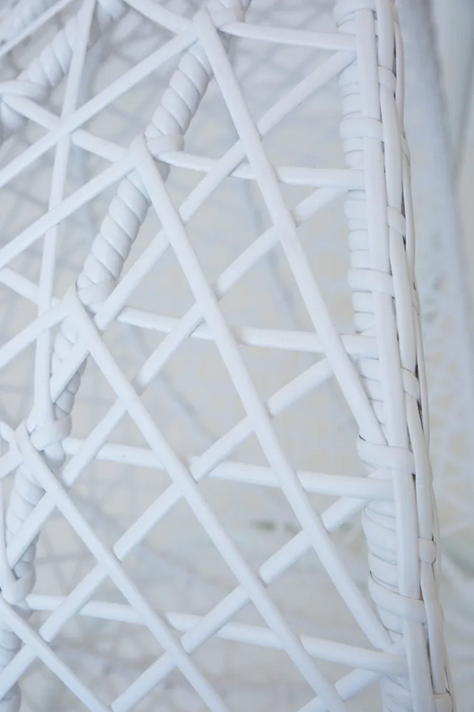 Подвесное кресло кокон садовое Barberries Yova Cross. Стойка белая до 225 кг, подушка трапеция бежевая