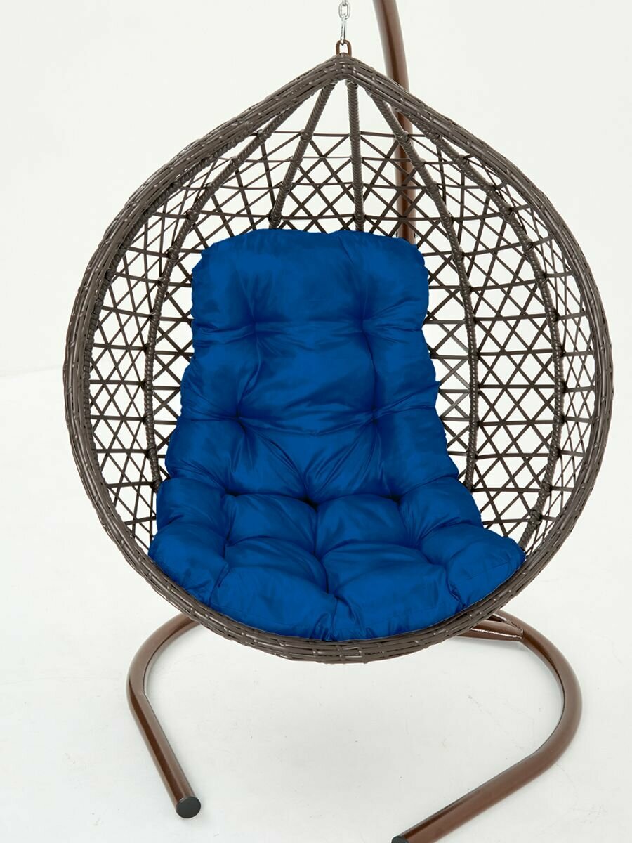Купить Подвесное кресло кокон садовое Barberries Yova Cross. Стойка венге до 225 кг, подушка трапеция синяя