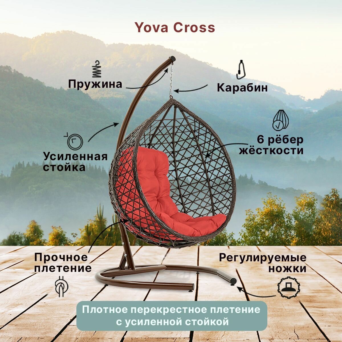 Купить Подвесное кресло кокон садовое Barberries Yova Cross. Стойка венге до 225 кг, подушка трапеция красная