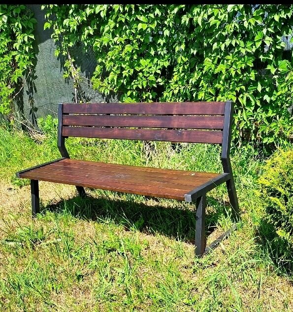 Скамейка садовая Классика с деревянными спинкой и сиденьем без покраски, лавочка для дачи с металлическим каркасом