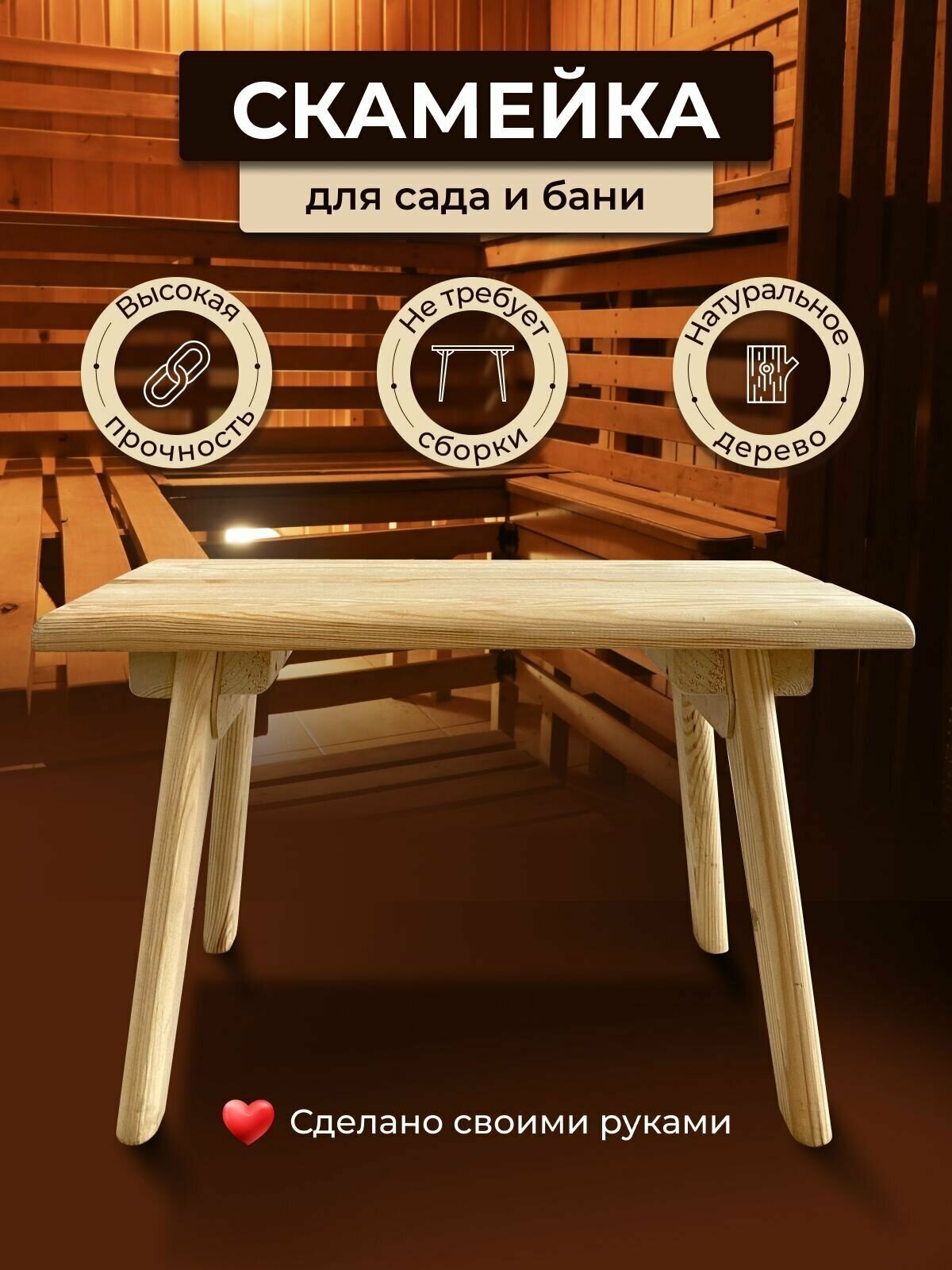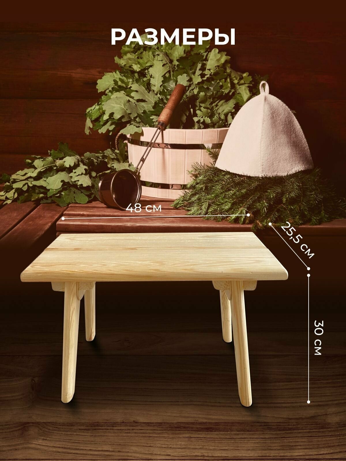 Скамейка для бани и сада деревянная,без покрытия 48x25,5x30 интересное: