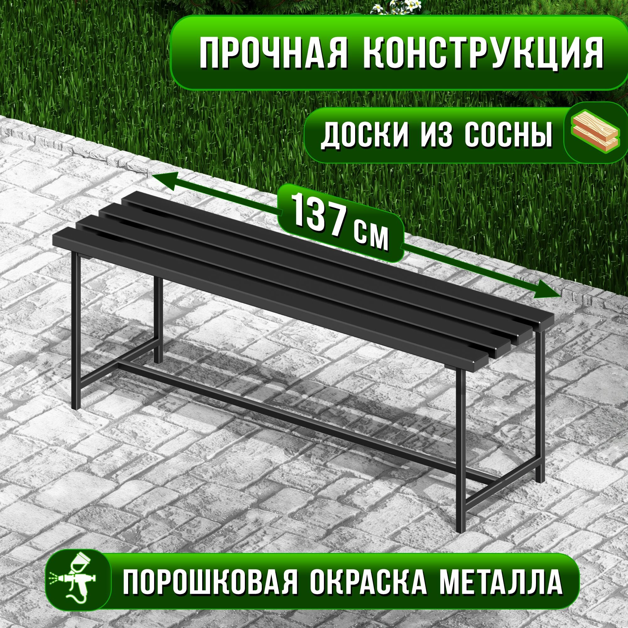 Купить Скамейка садовая Классика с деревянным сиденьем из 4-ех досок цвета антрацит, лавочка для дачи с металлическим каркасом