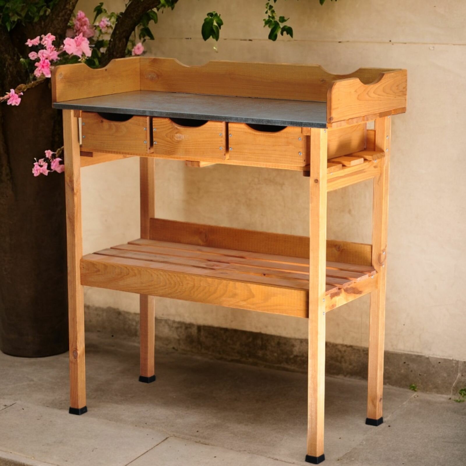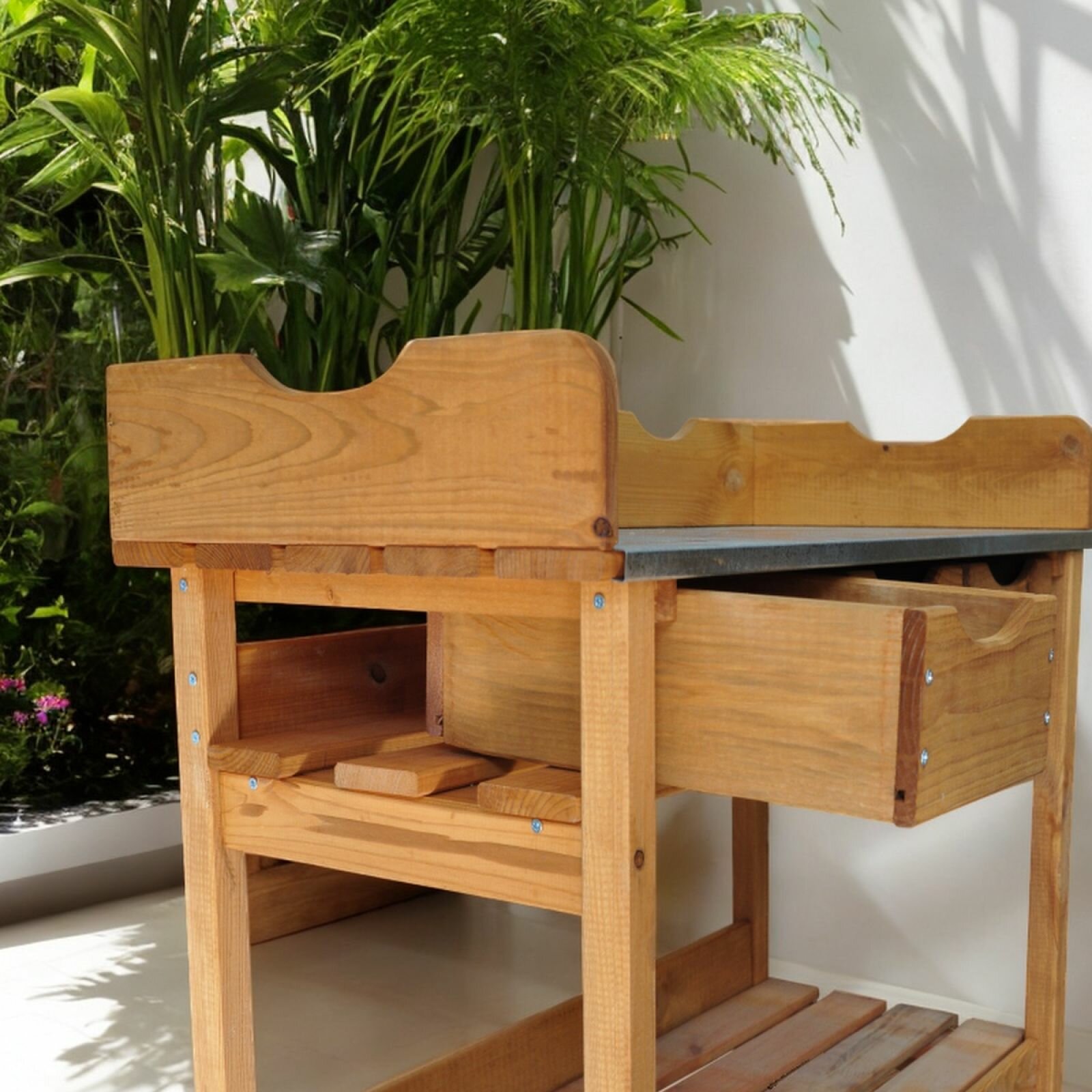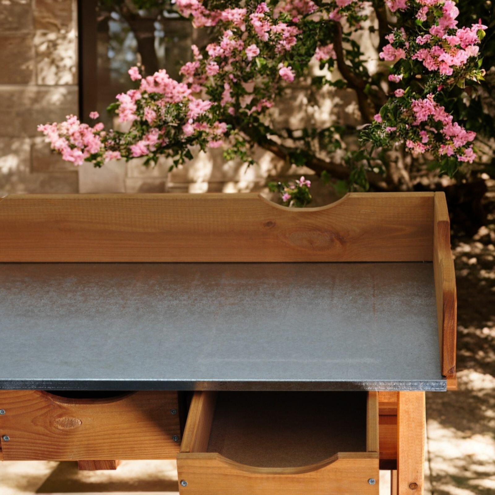 Купить Садовый стол с цинковой столешницей и выдвижными ящиками для пересадки растений и цветов