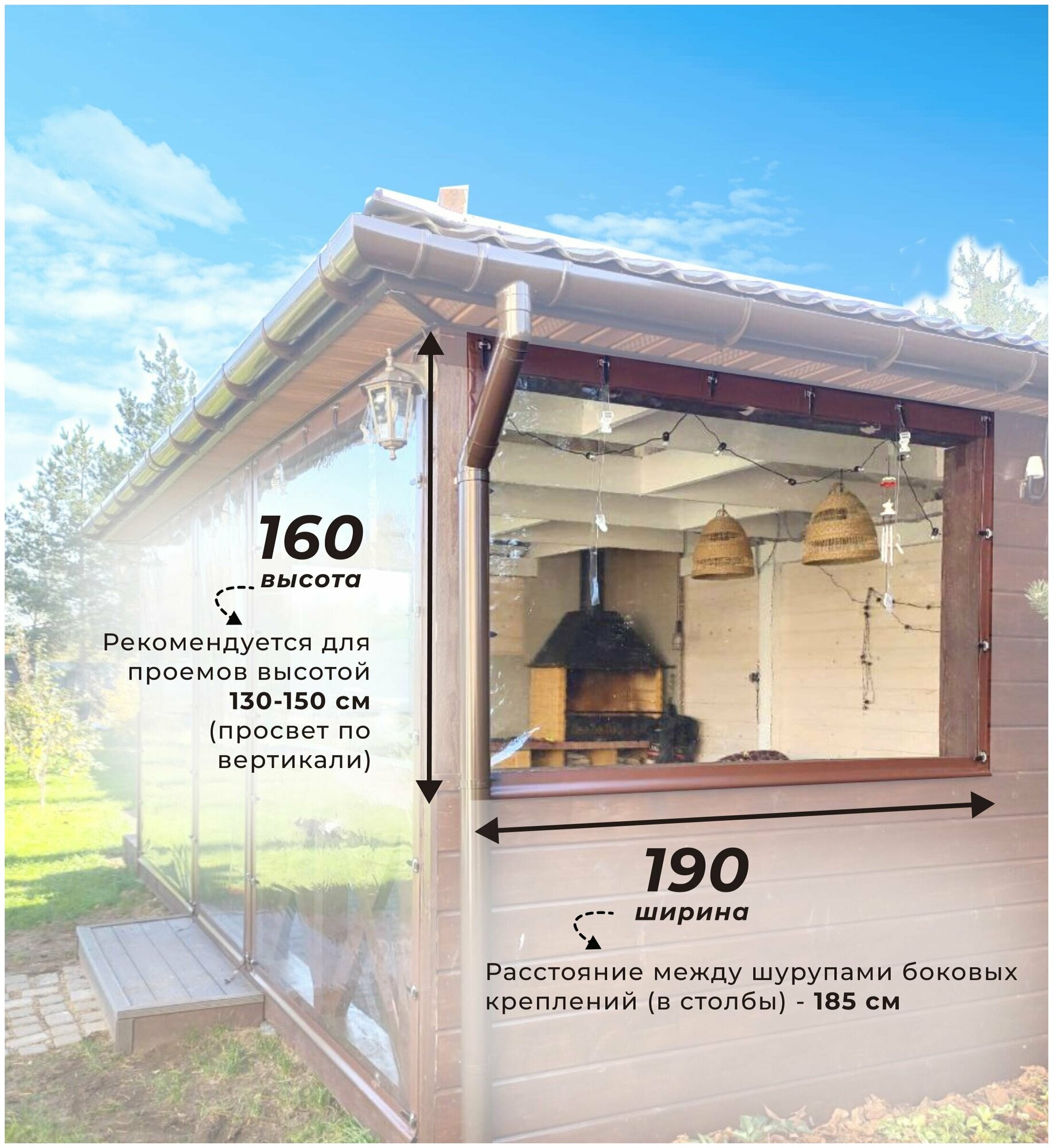 Мягкое окно ПВХ 160х190 см для террасы, беседки, веранды, цвет окантовки коричневый интересное: