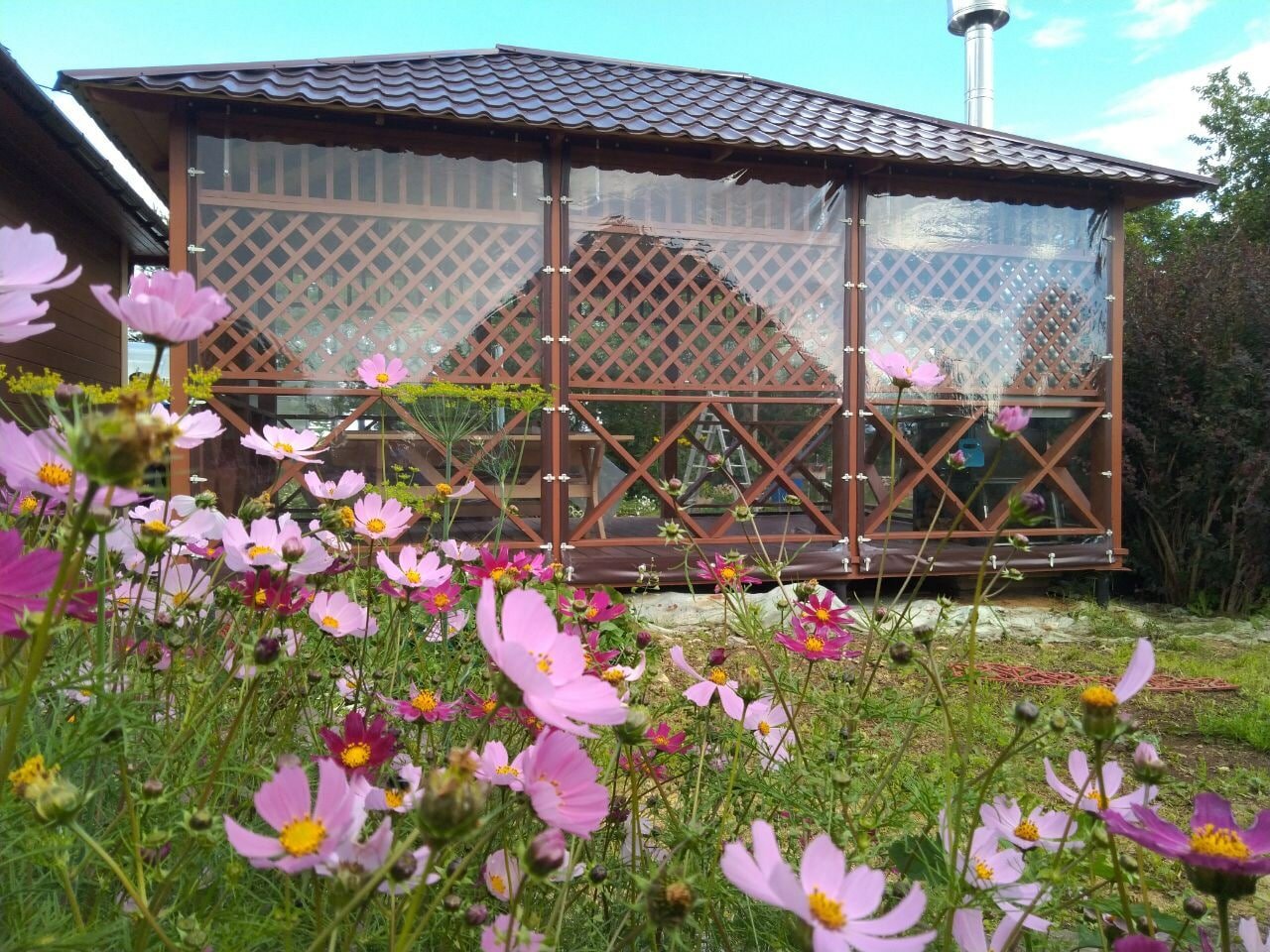 Мягкое окно 240х210 см для беседки, веранды, цвет окантовки коричневый интересное: