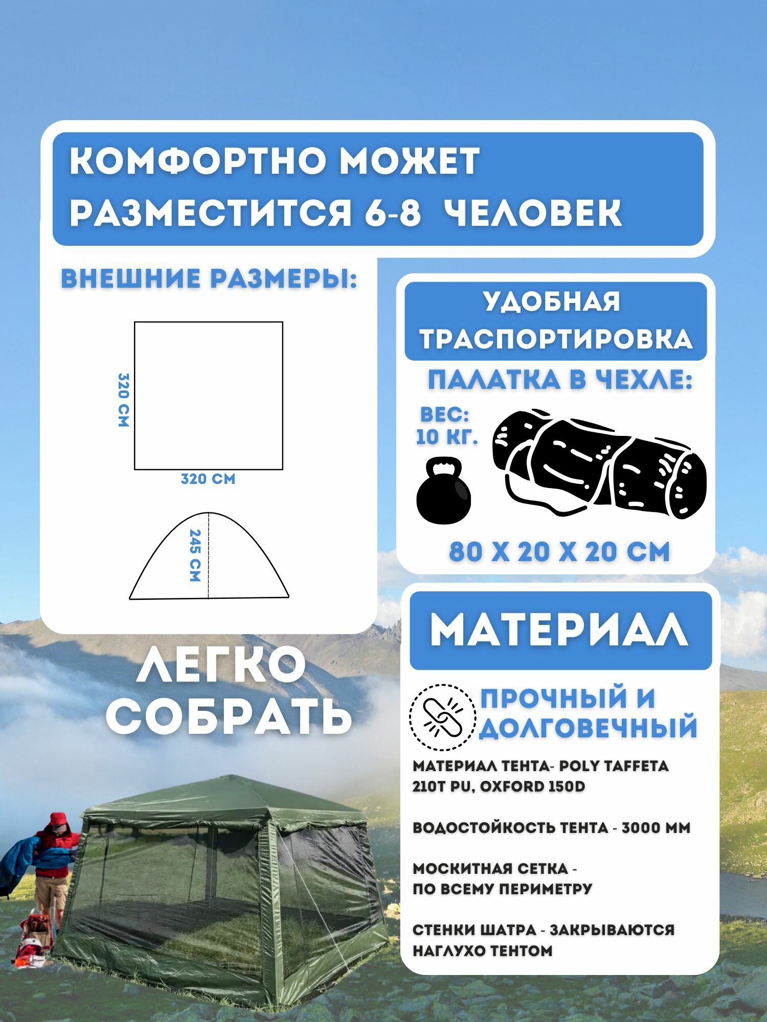 | Высота шатра | 245 см |