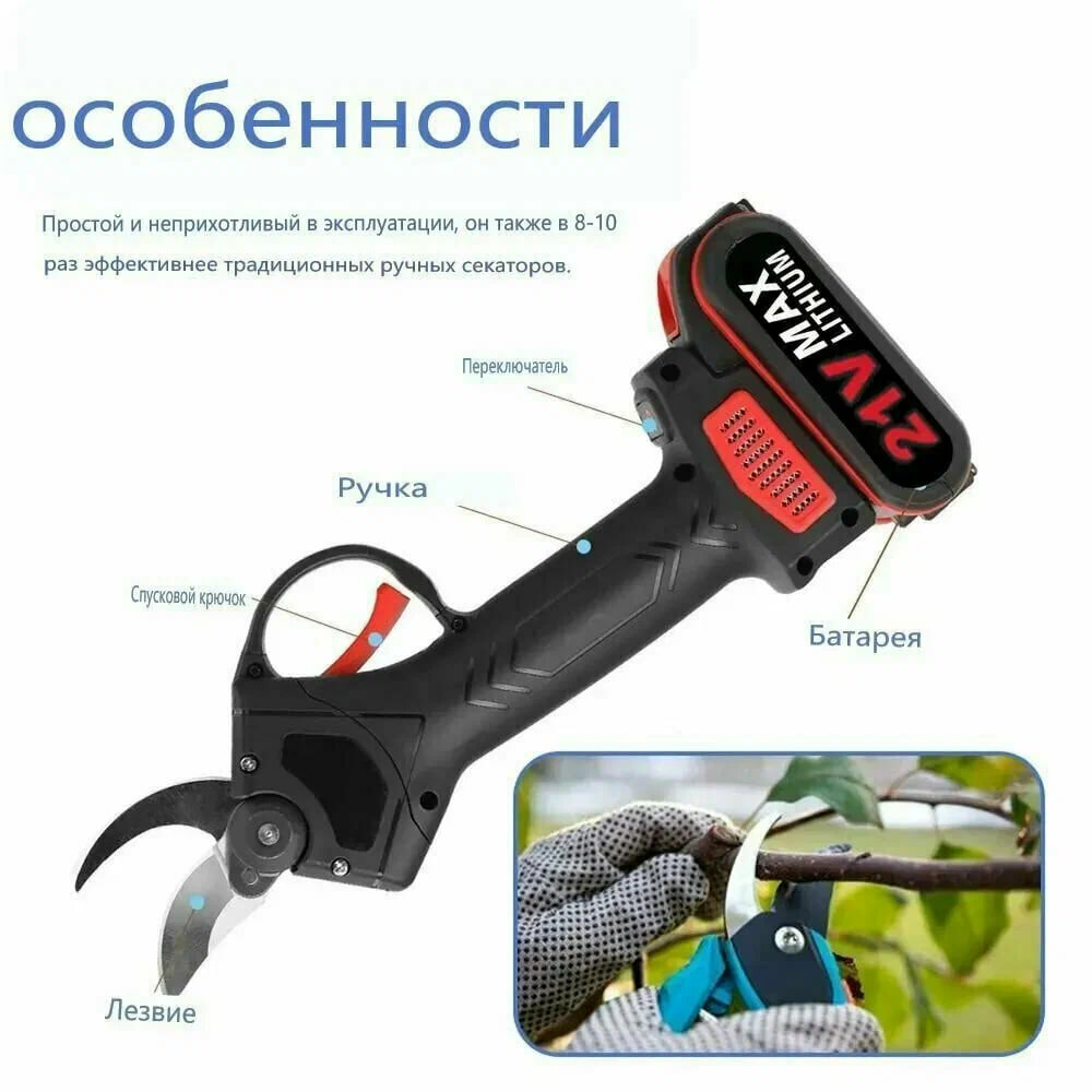 Аккумуляторный секатор с двумя батареями и пилой в кейсе интересное: